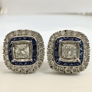 1.80cts Diamonds and 1.20cts Blue Sapphires Earrings.
