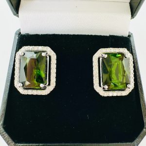 15.23ct Natural Green Tourmaline & Diamond Earrings
