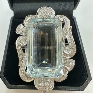40ct Natural Aquamarine and 2cts Natural Diamonds Art Deco Cocktail Ring