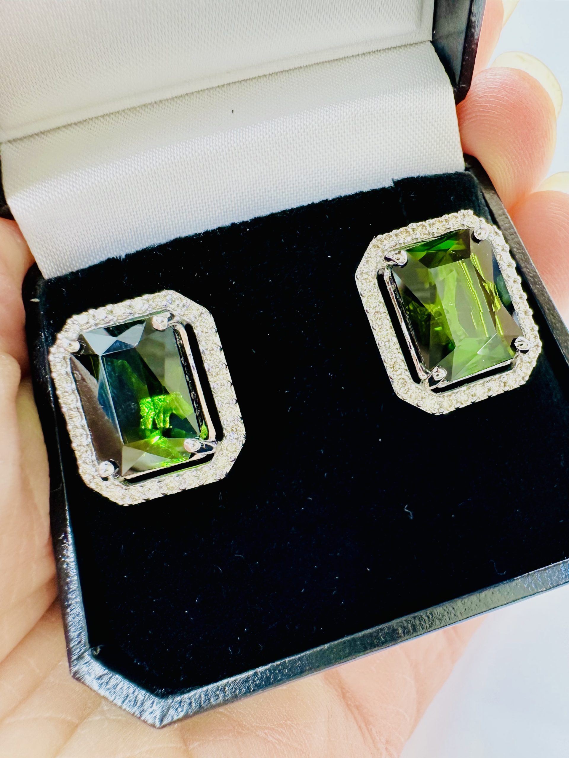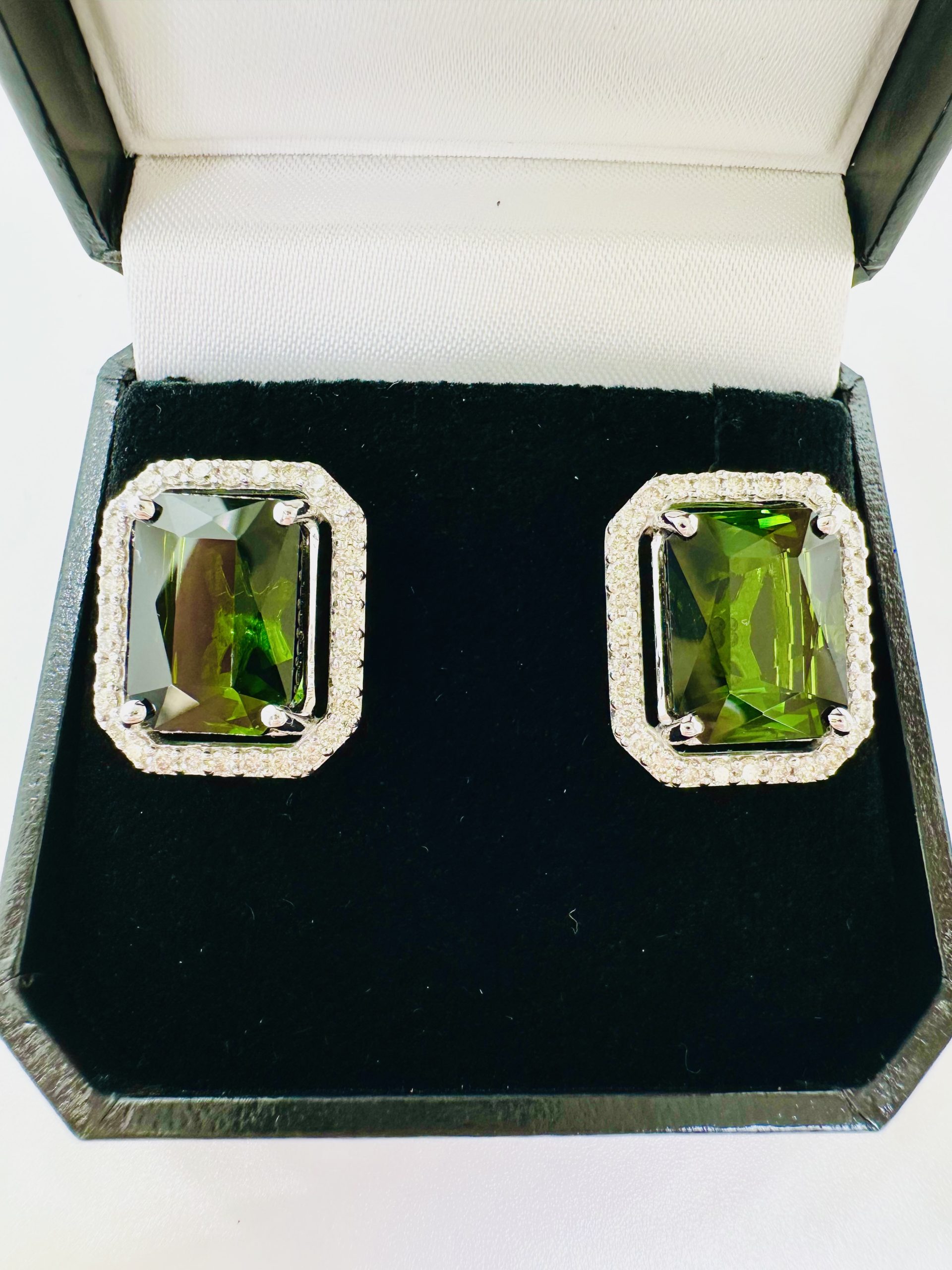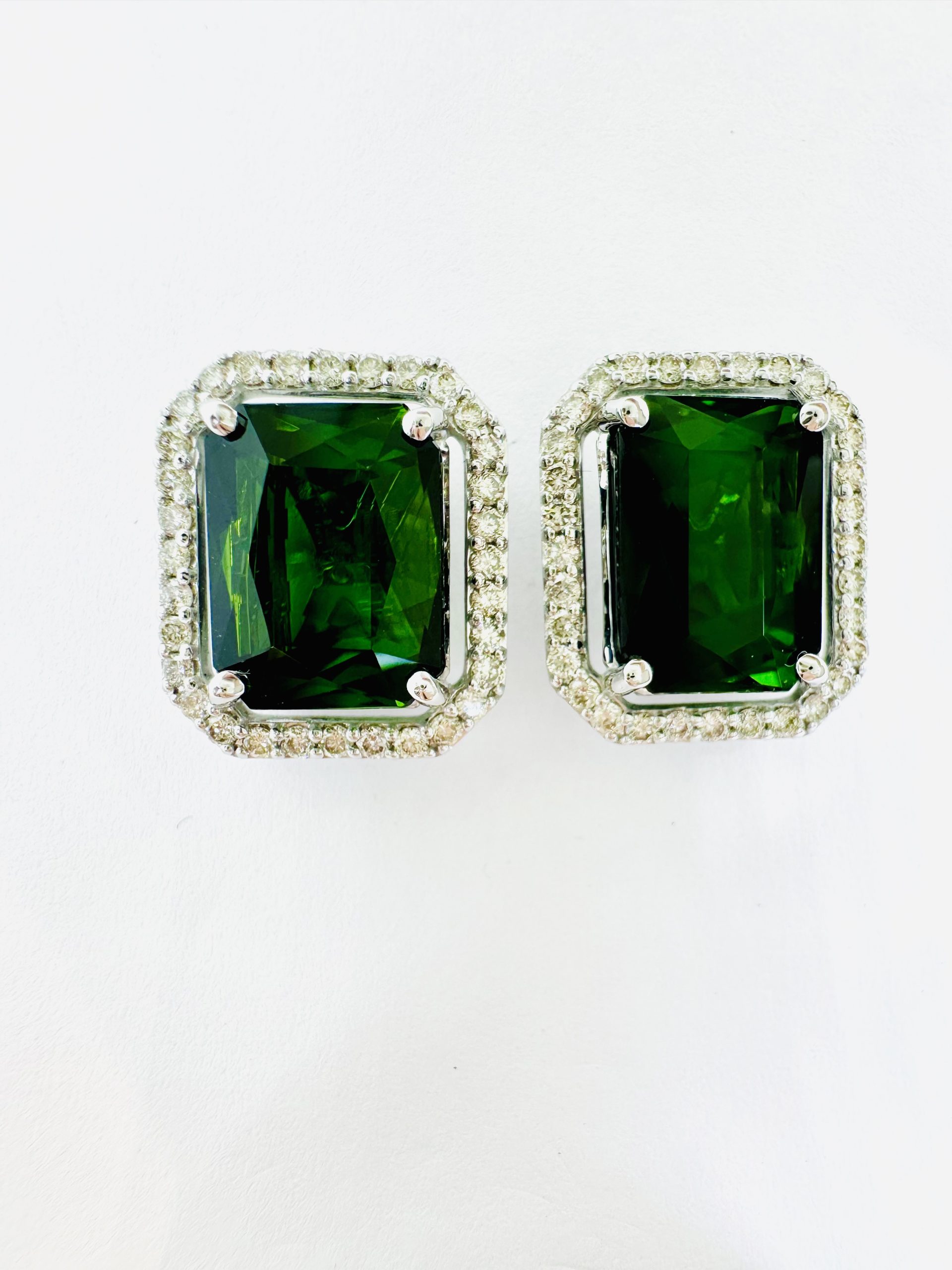 18K white gold Natural Green Tourmaline & Diamond Earrings.