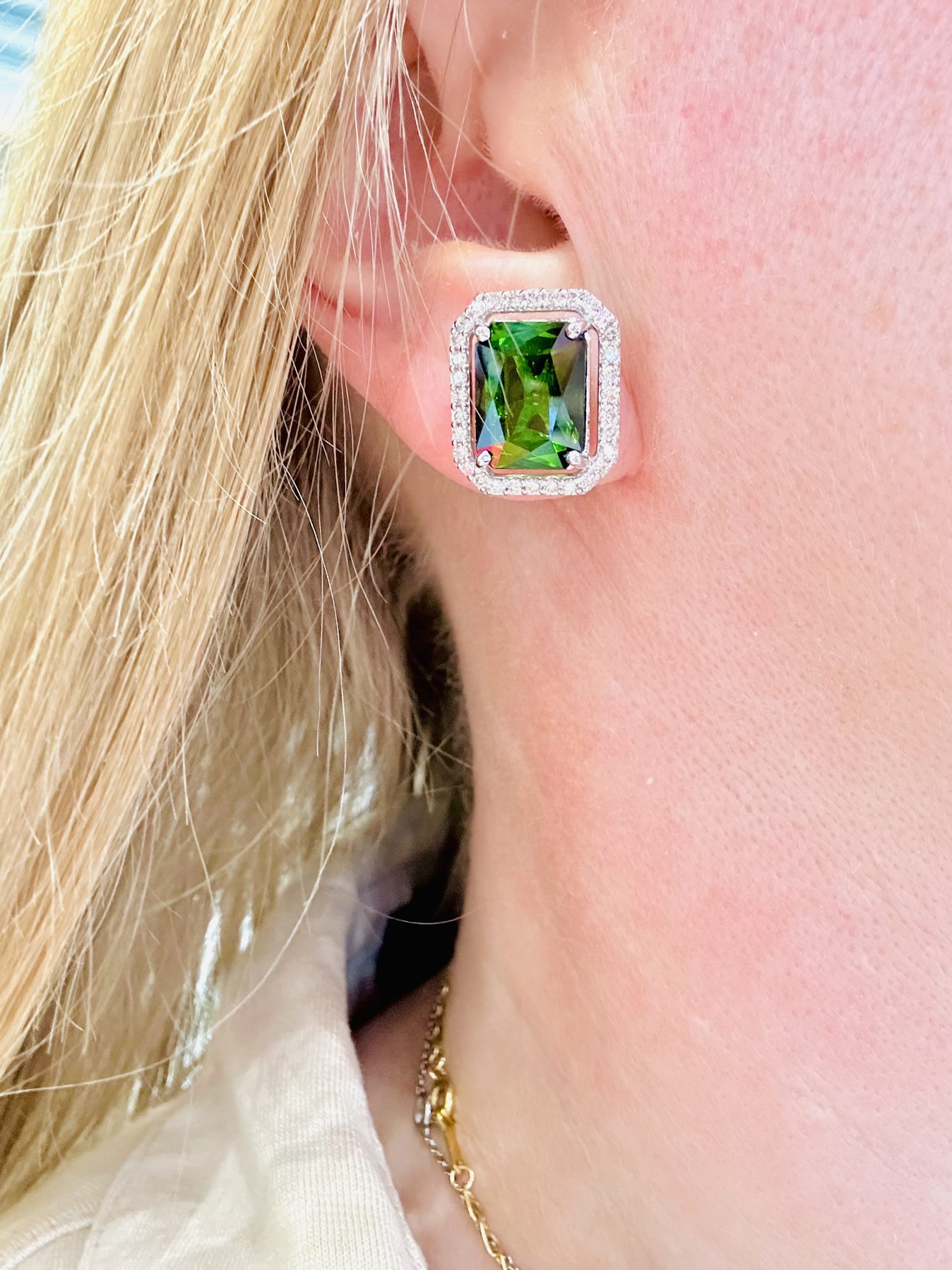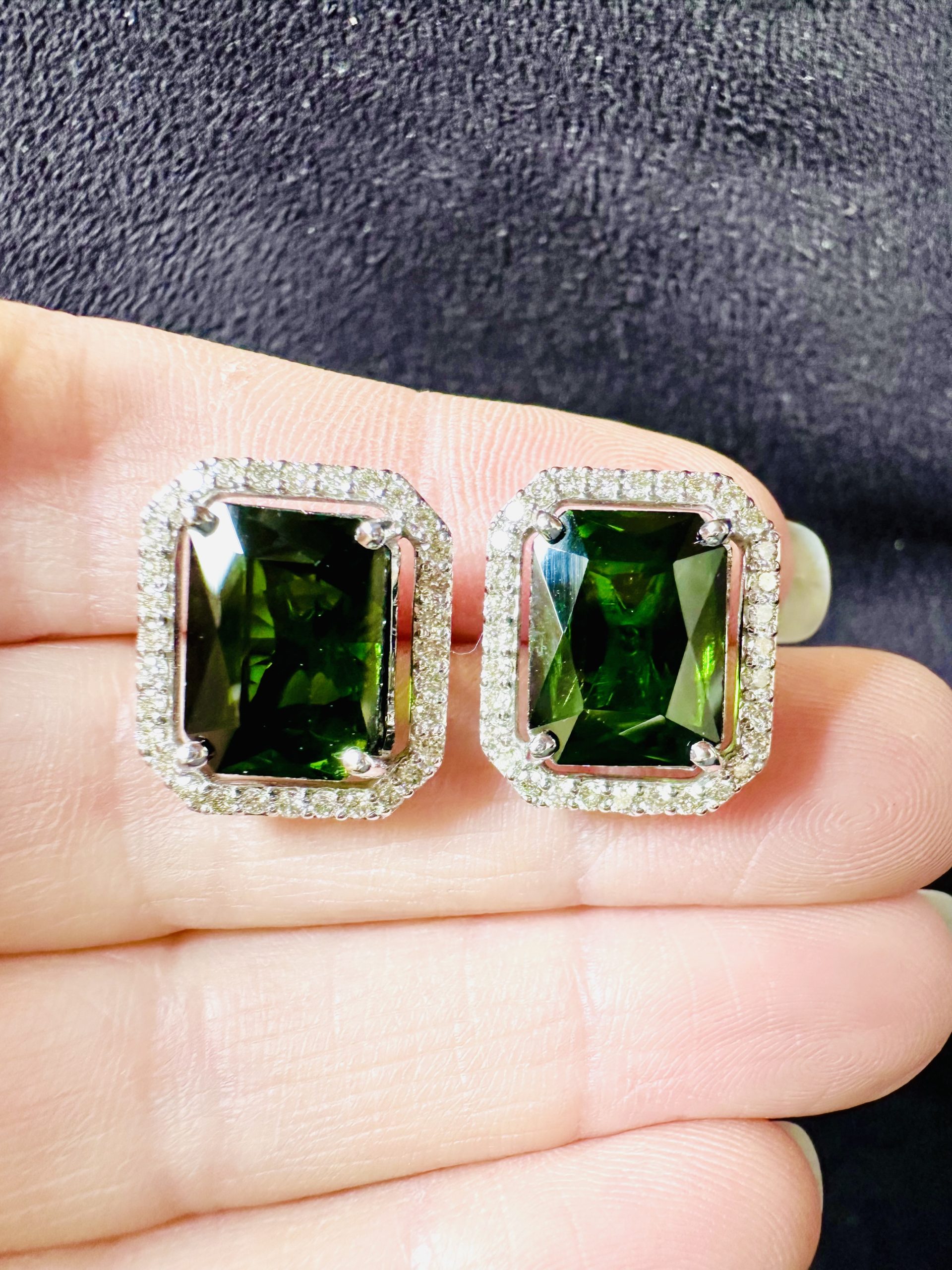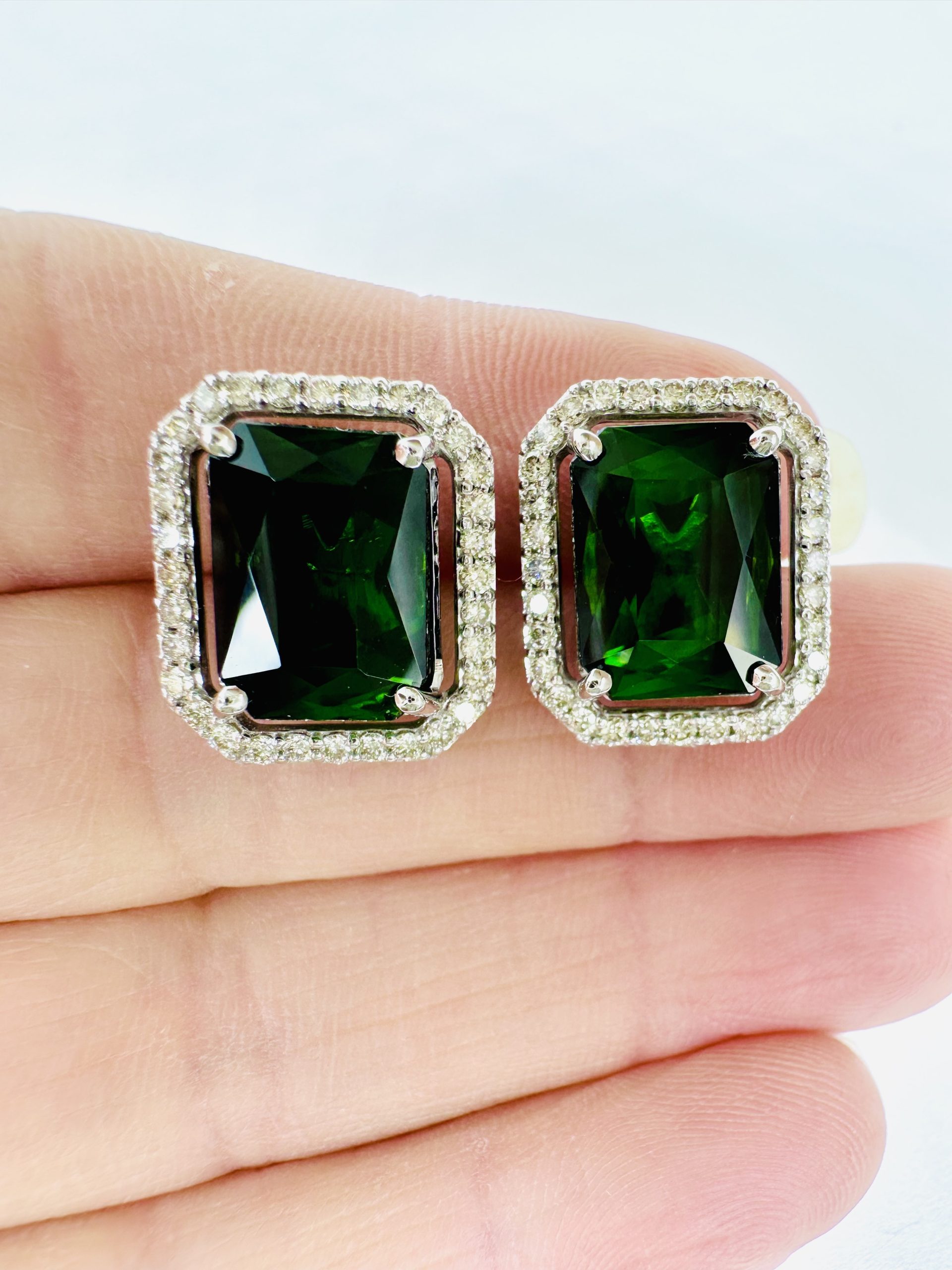 18K white gold Natural Green Tourmaline & Diamond Earrings.