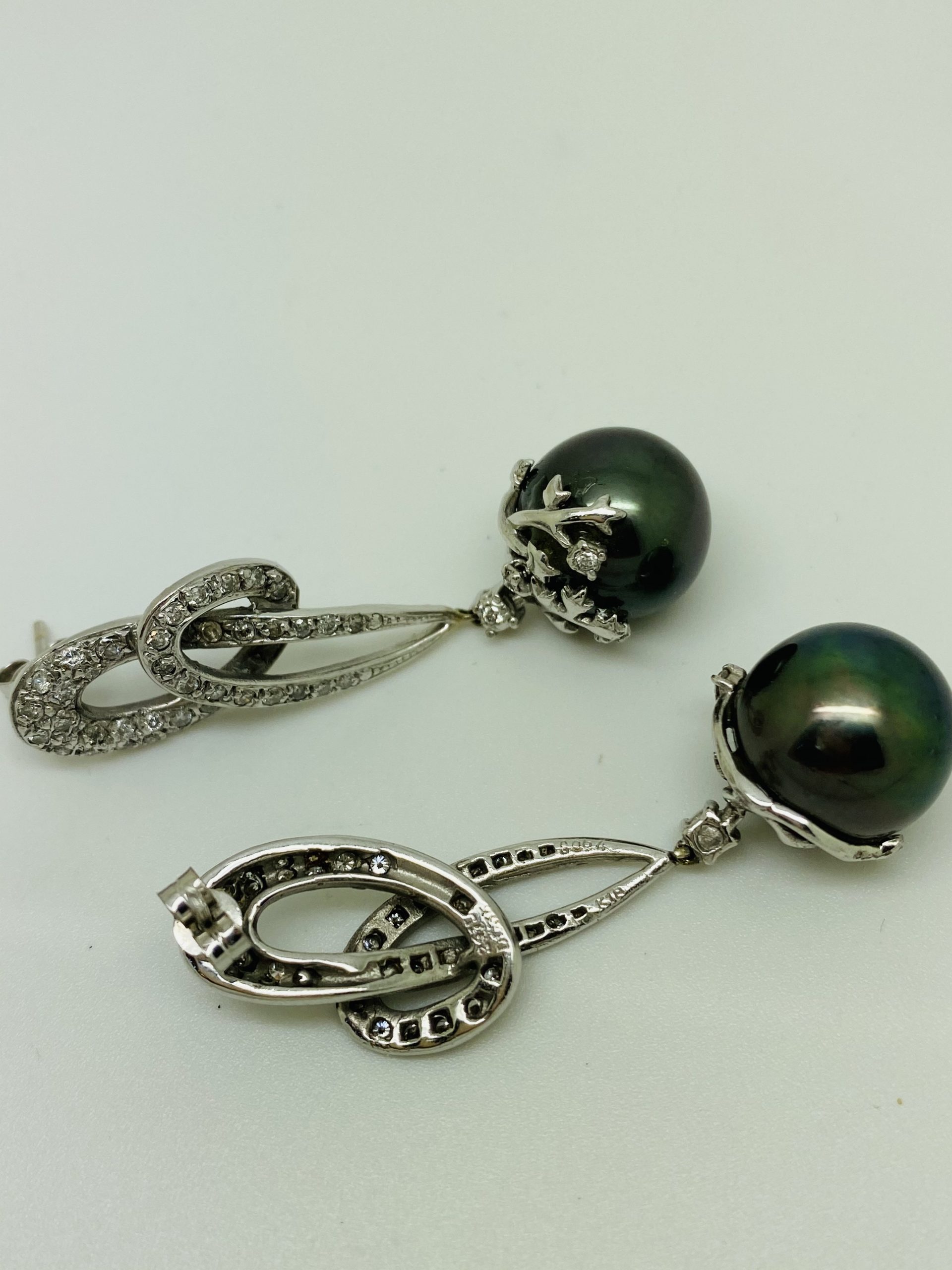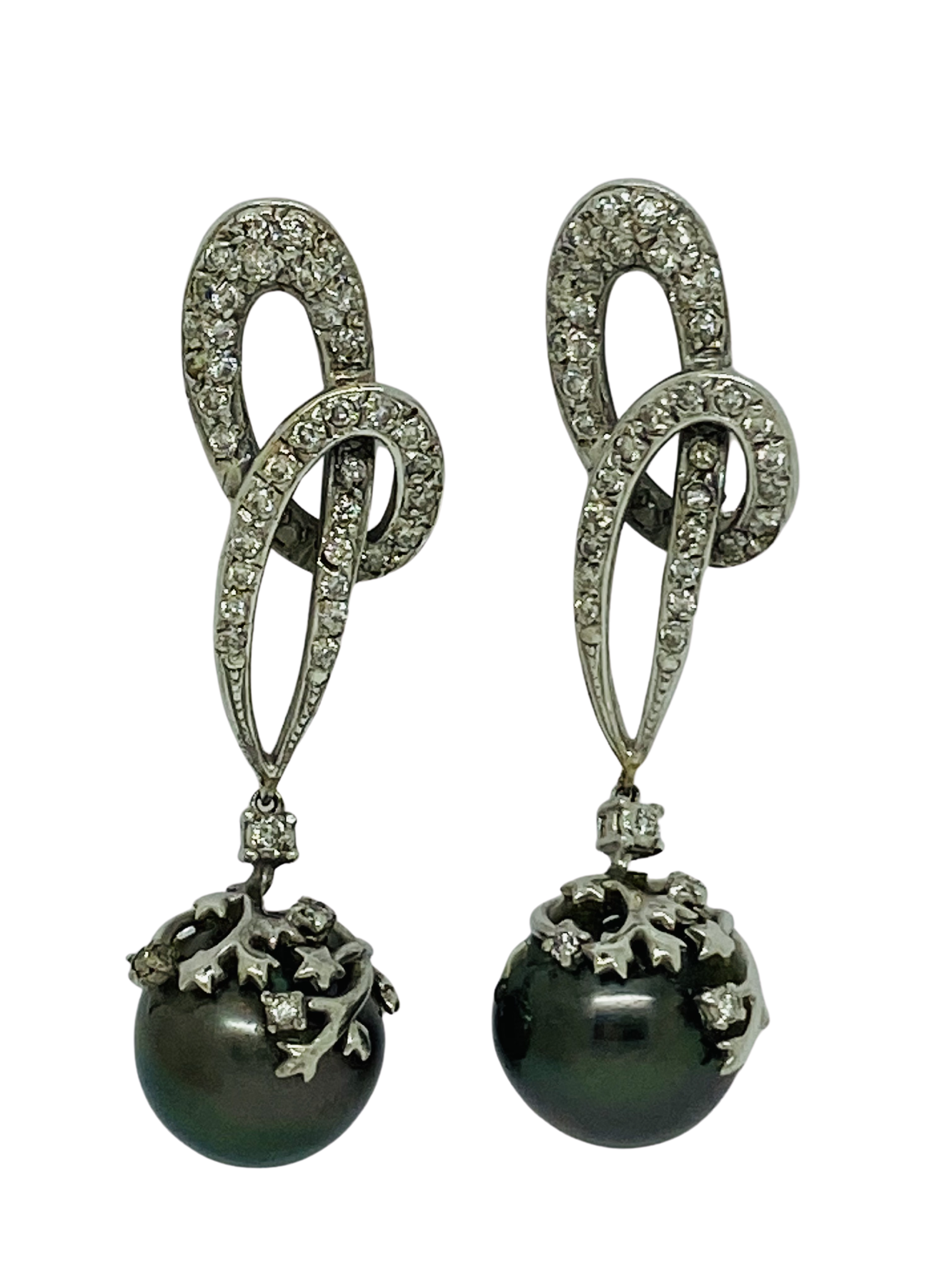 18K white gold 1.80ct Diamond and Black, Sea Pearl Earrings
