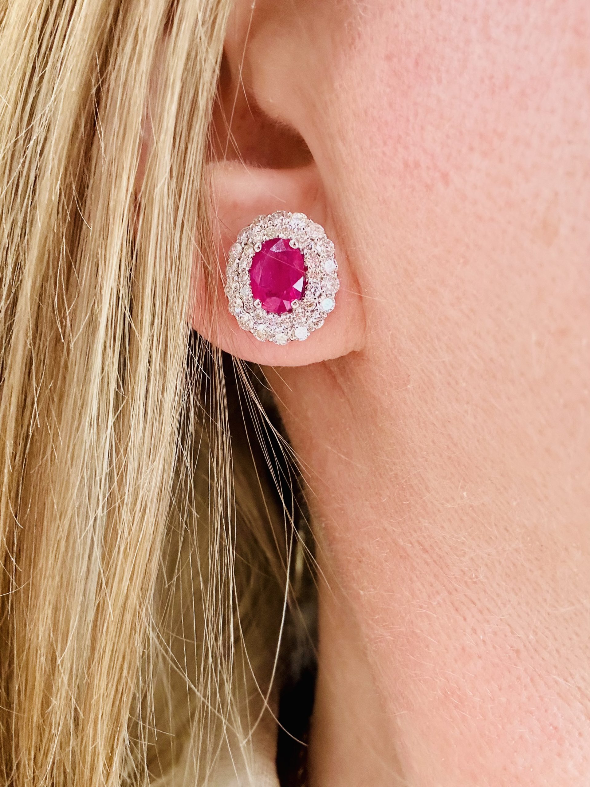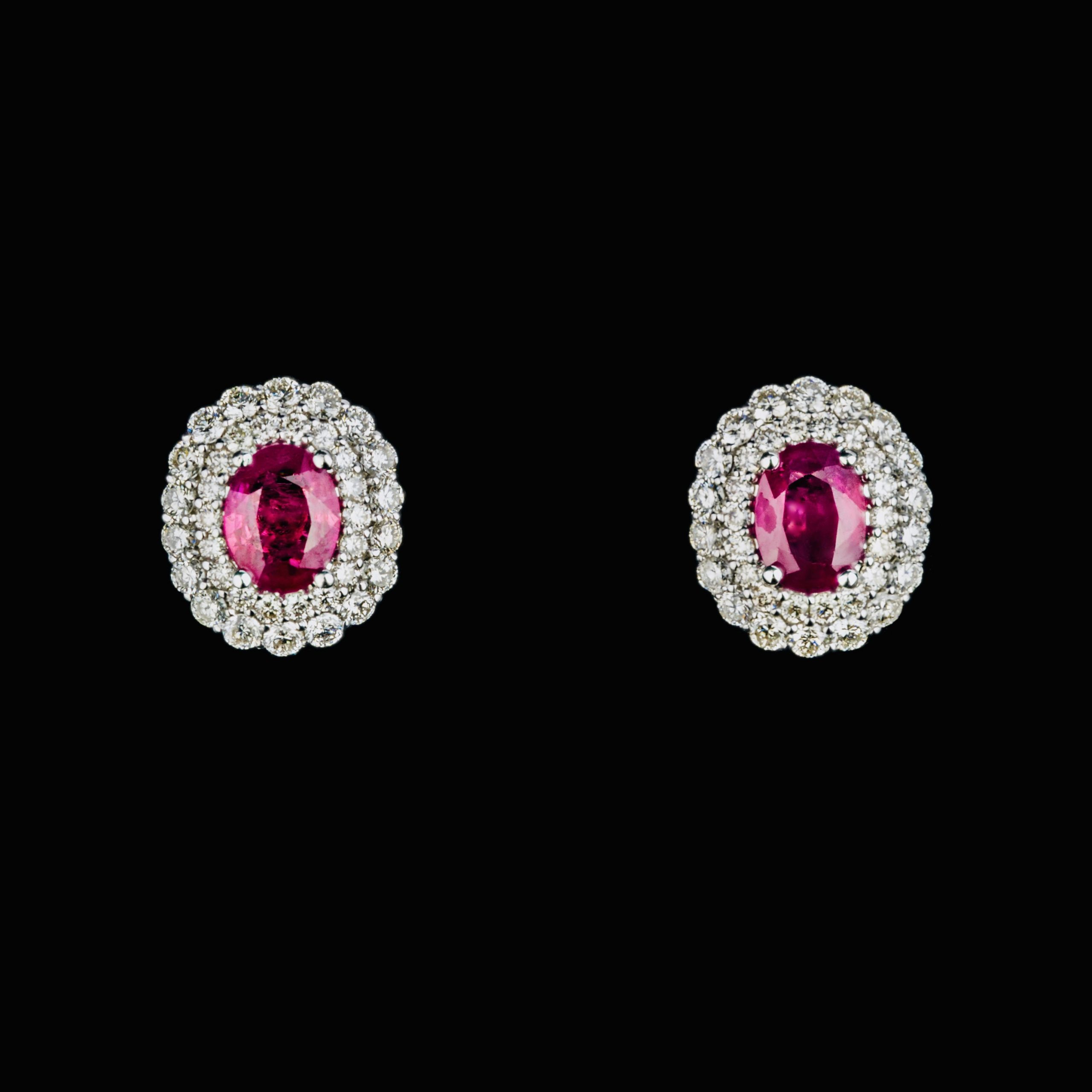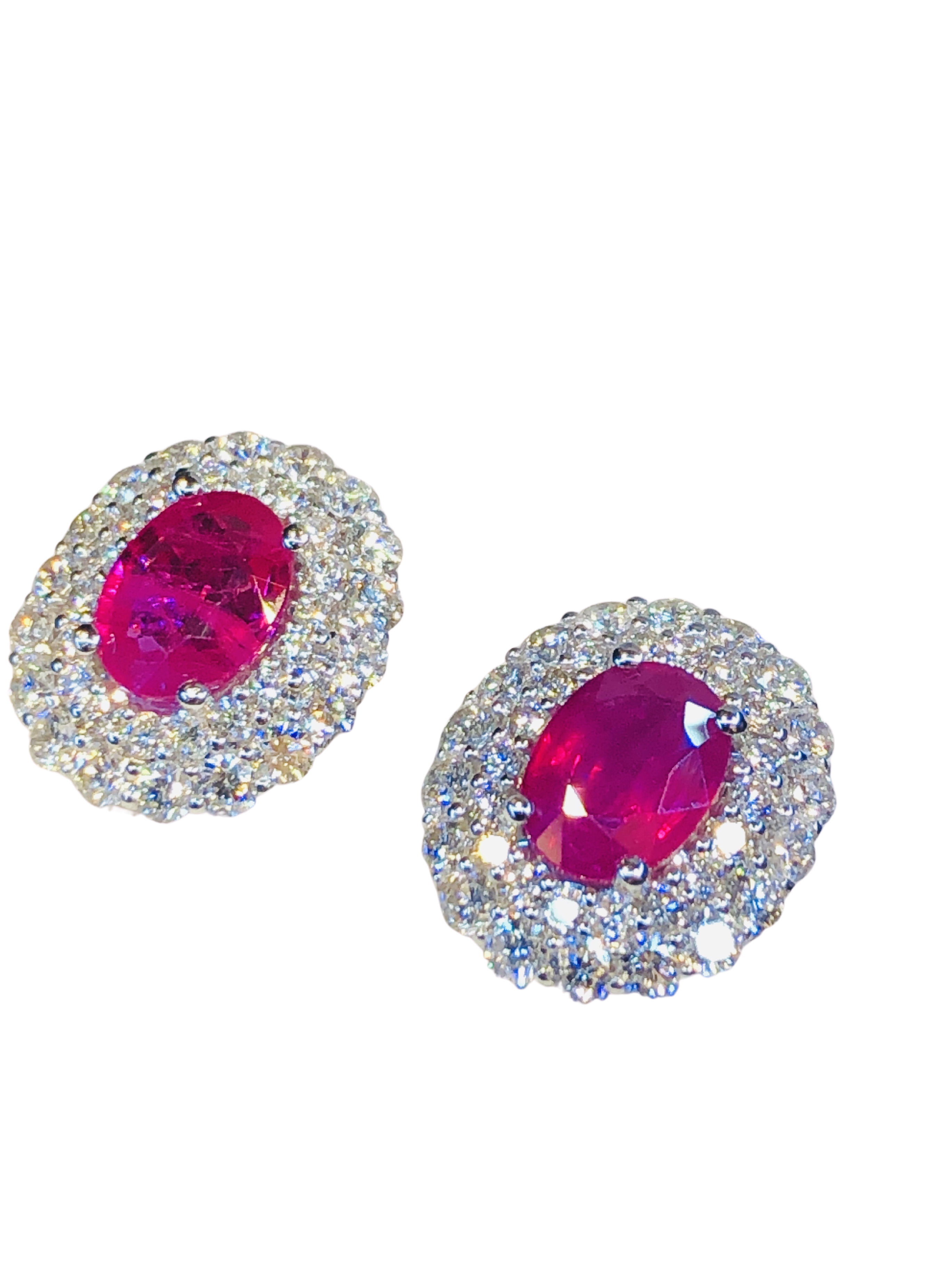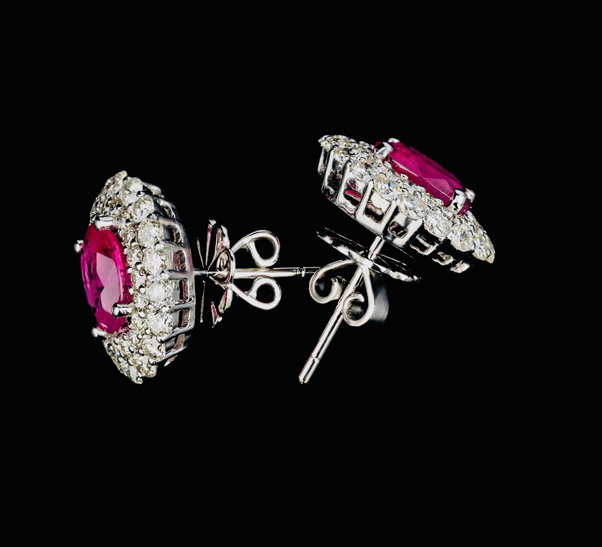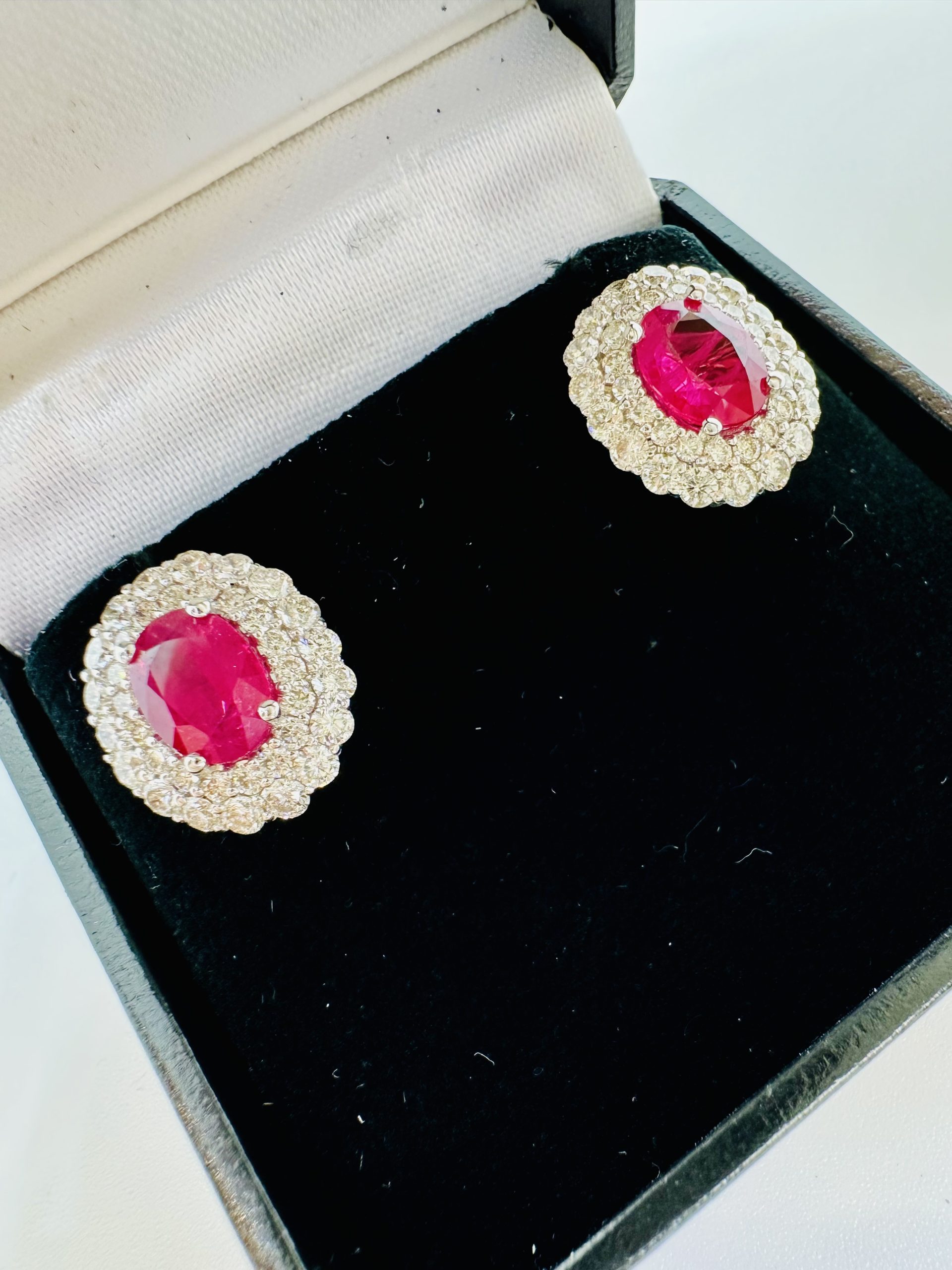 18K white gold 2.73ct Natural Ruby & Â 2.28ct Diamond EarringsÂ