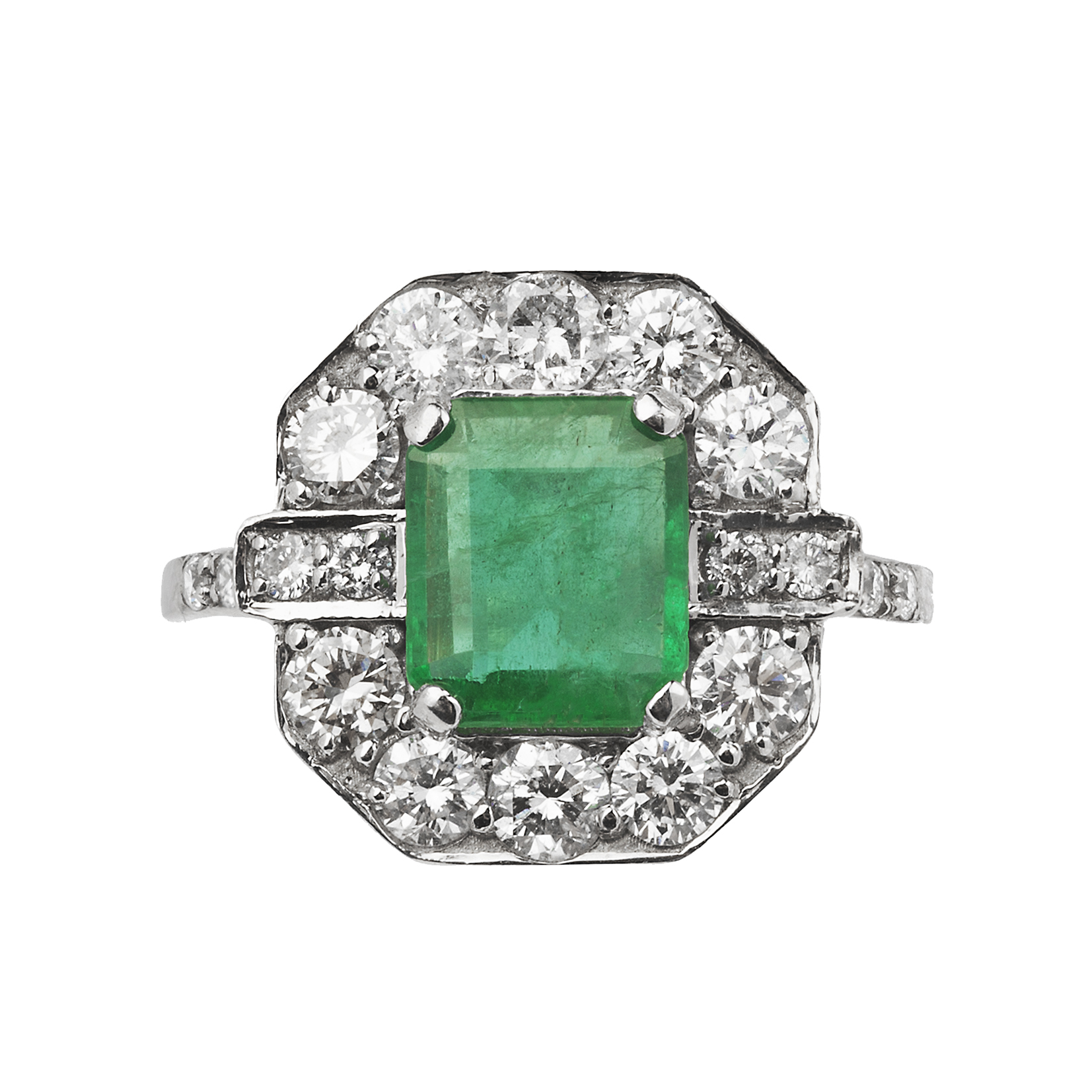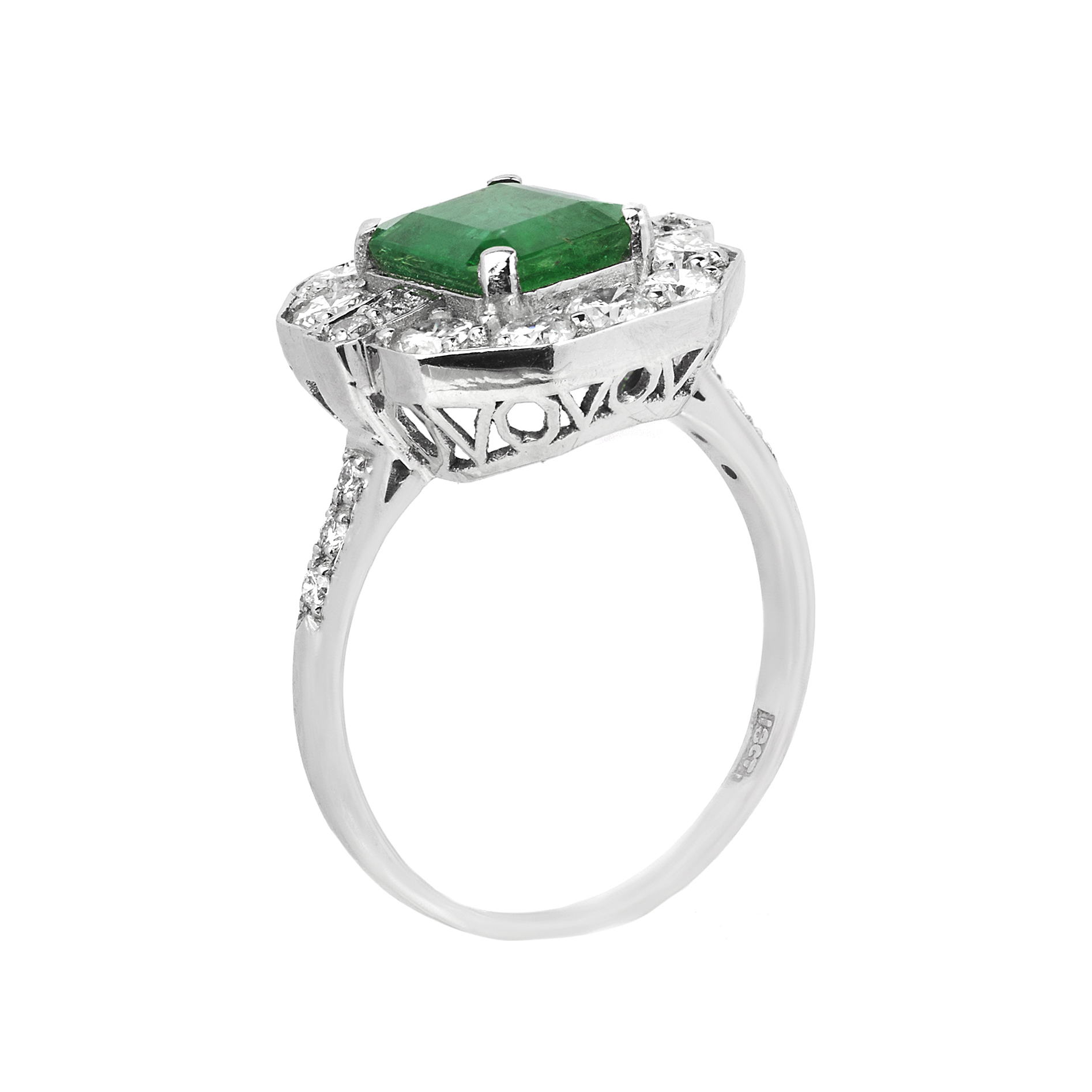 18K white gold 3.18ct Natural Emerald and 1.00ct Diamonds RingÂ