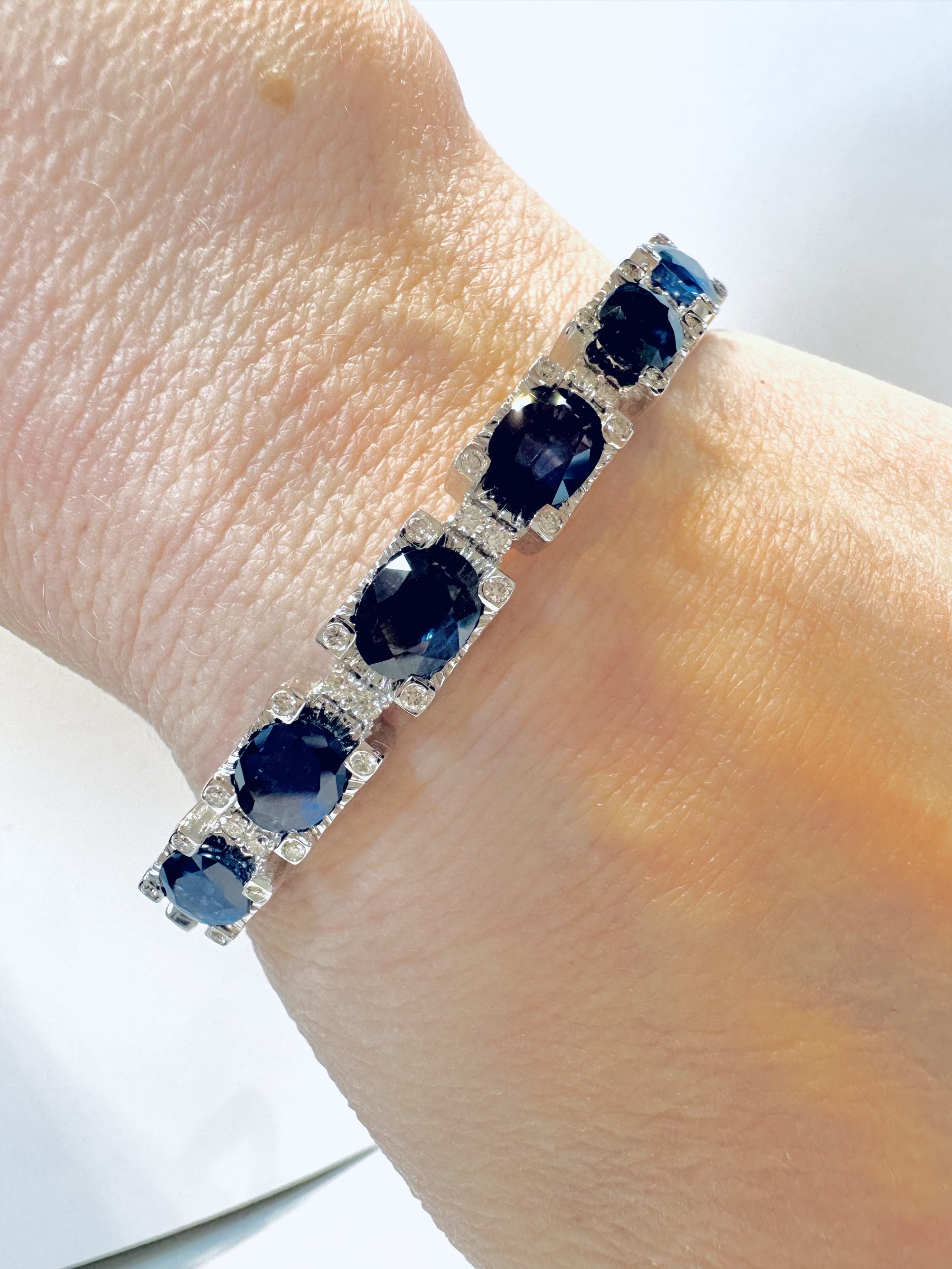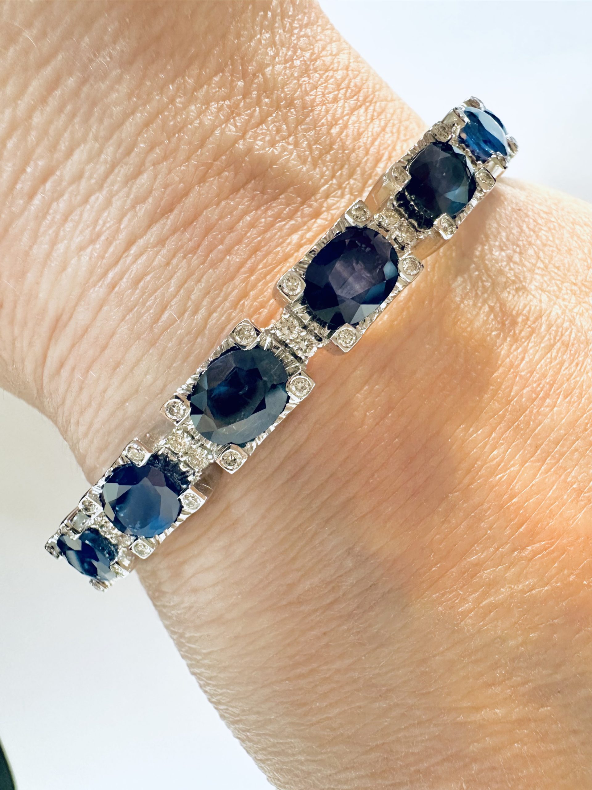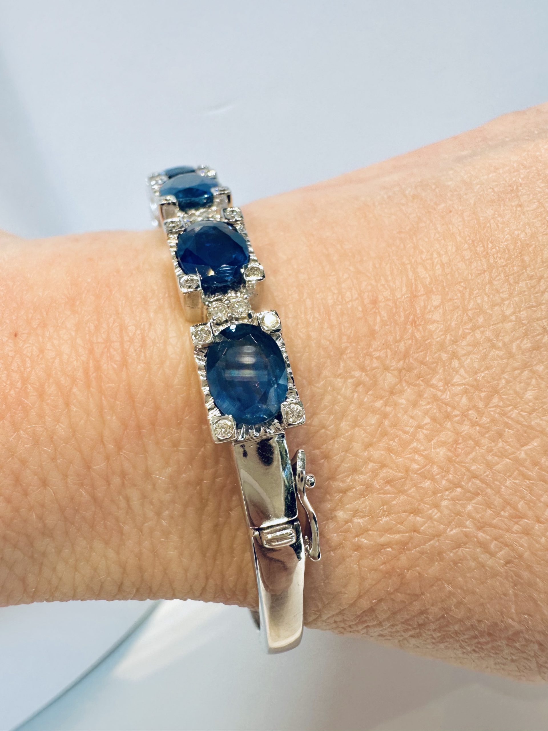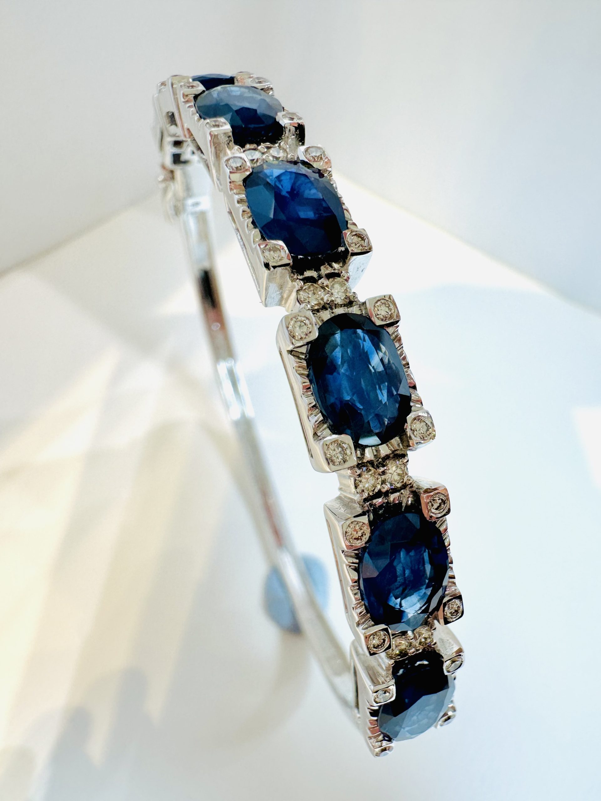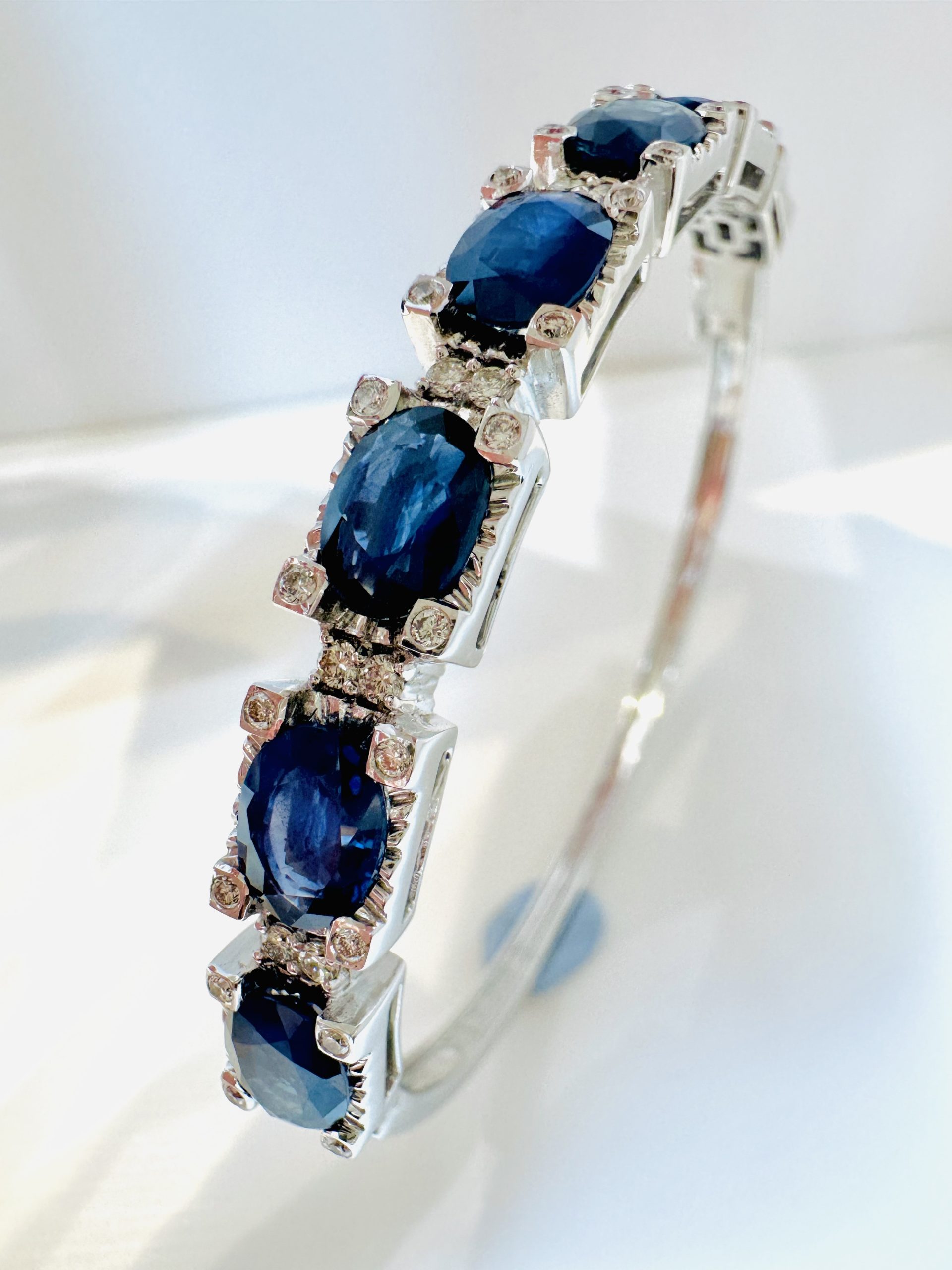 18K white gold 9.03ct Natural Blue Sapphire & 0.56ct Diamond BangleÂ