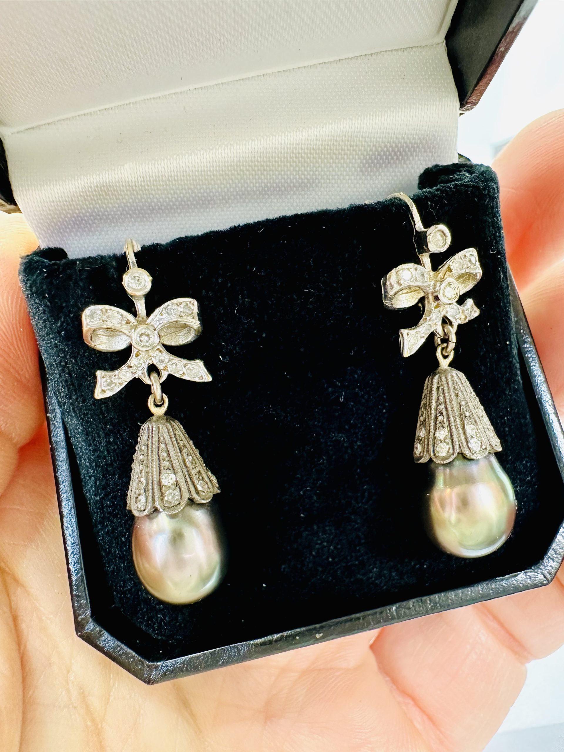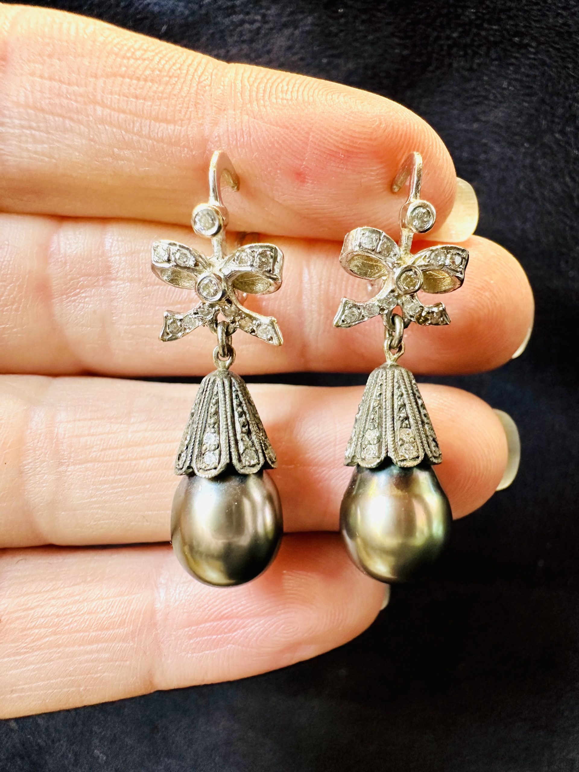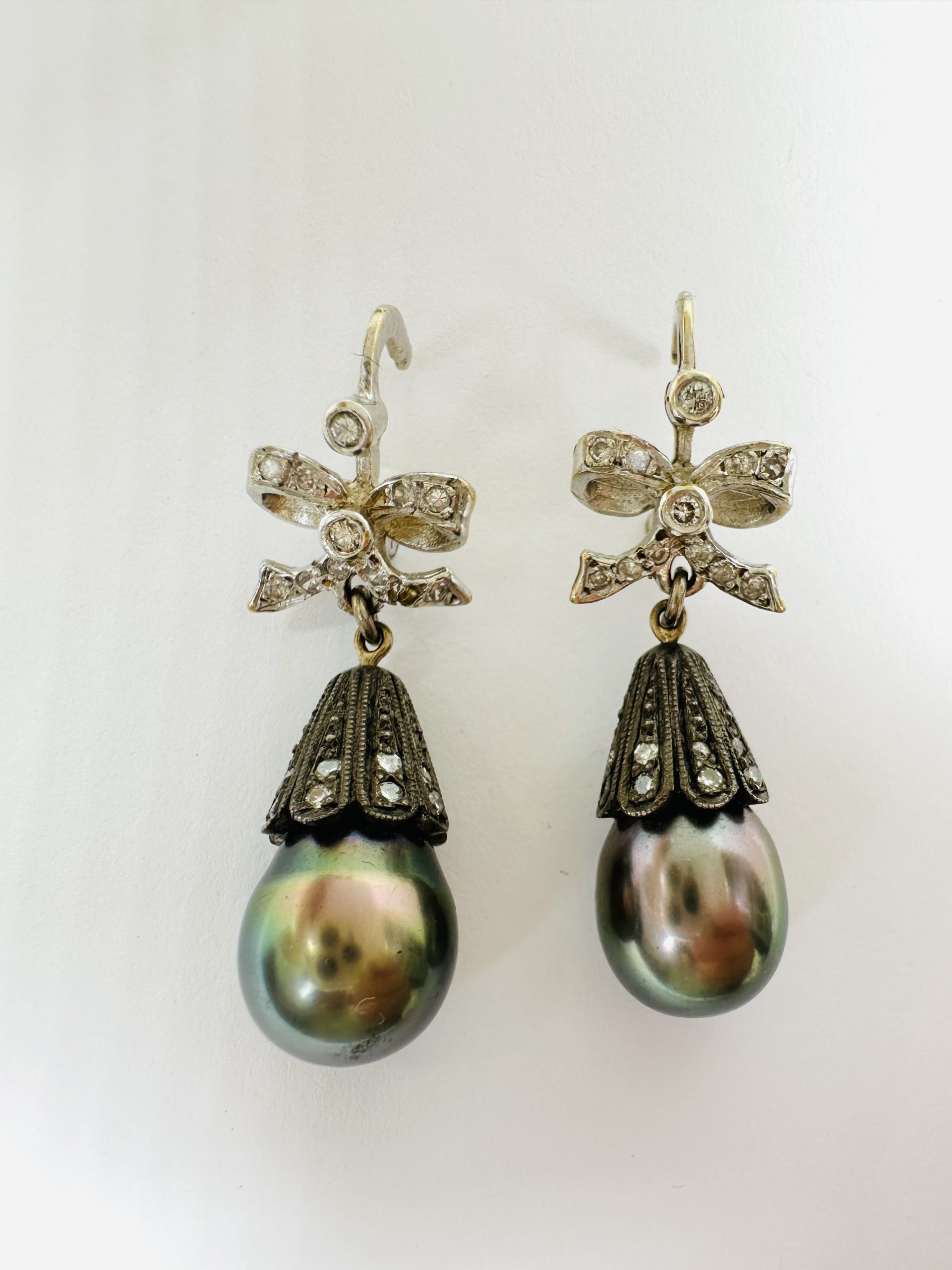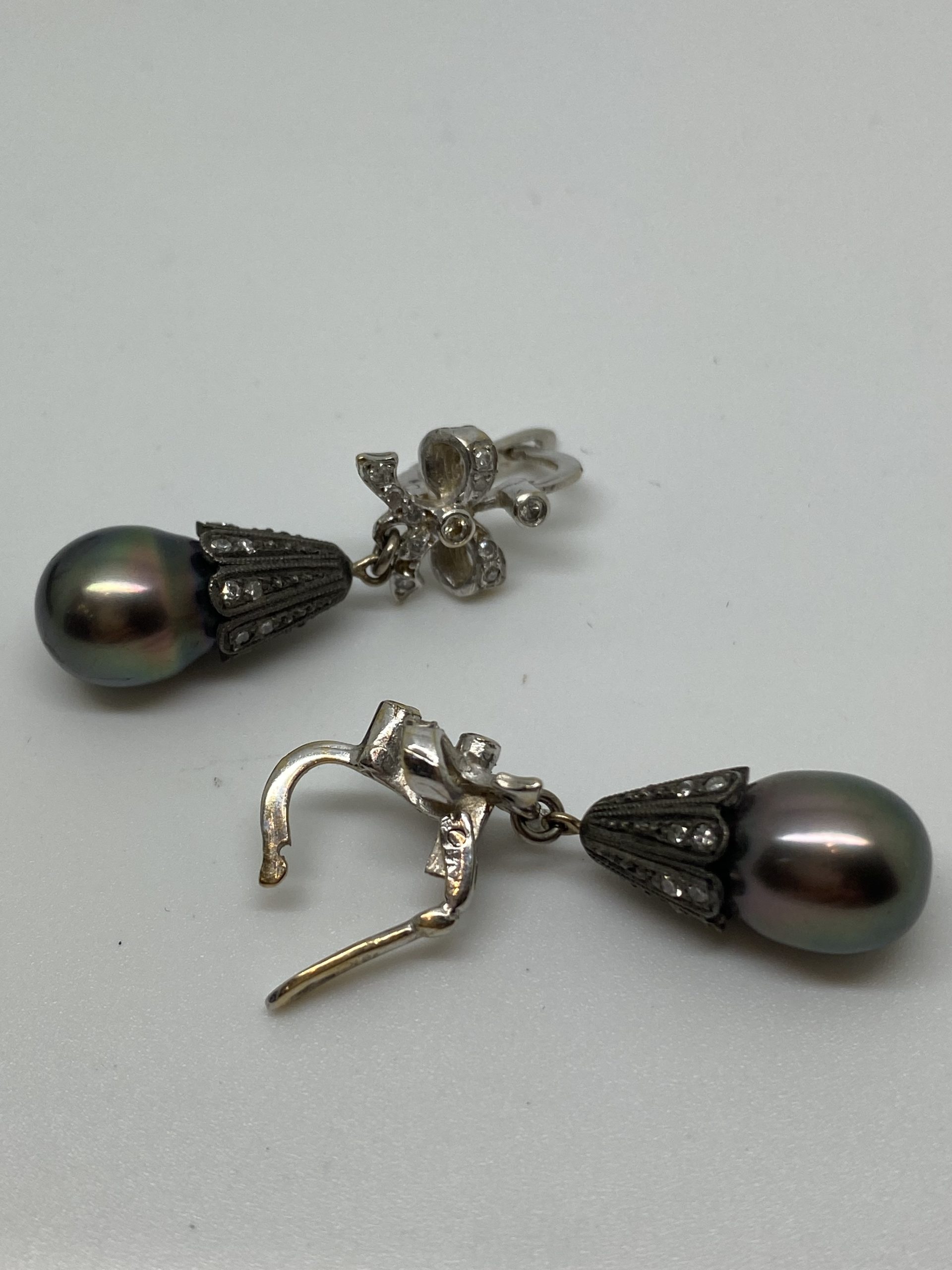 18K white gold Diamond and Black Pearl EarringsÂ