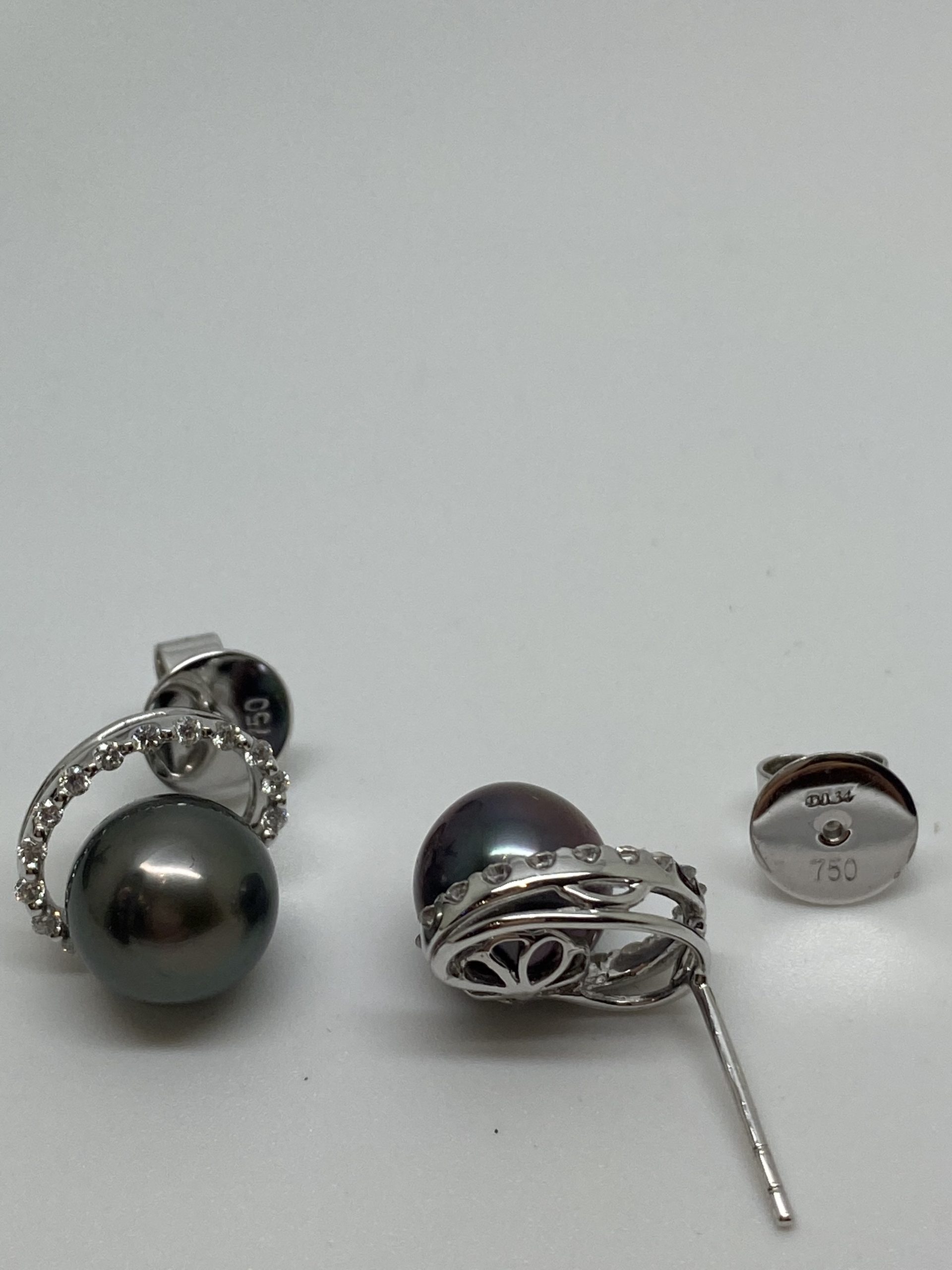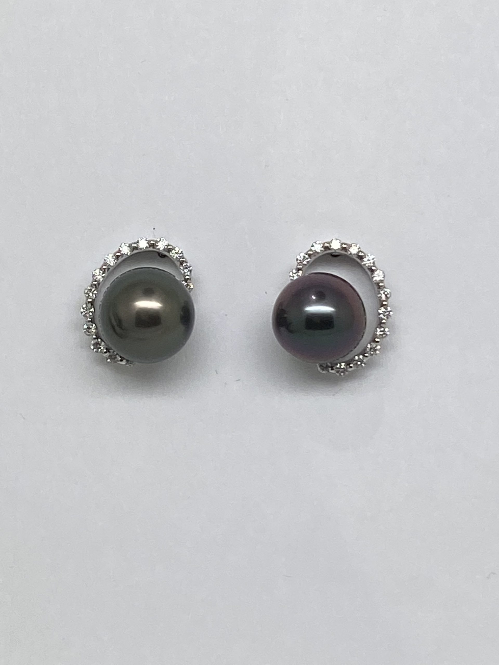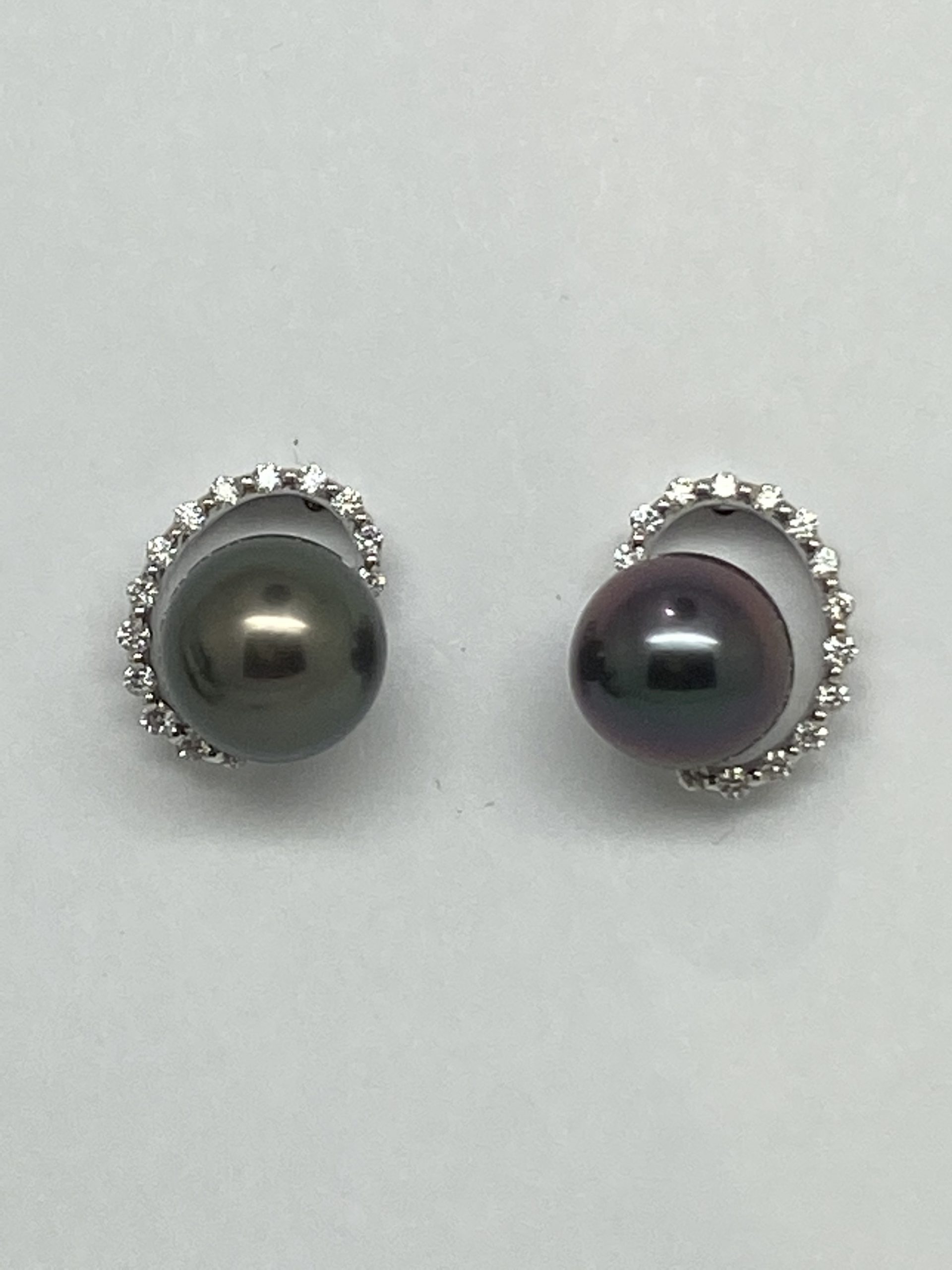 18K white gold Diamond and Black Pearl Earrings