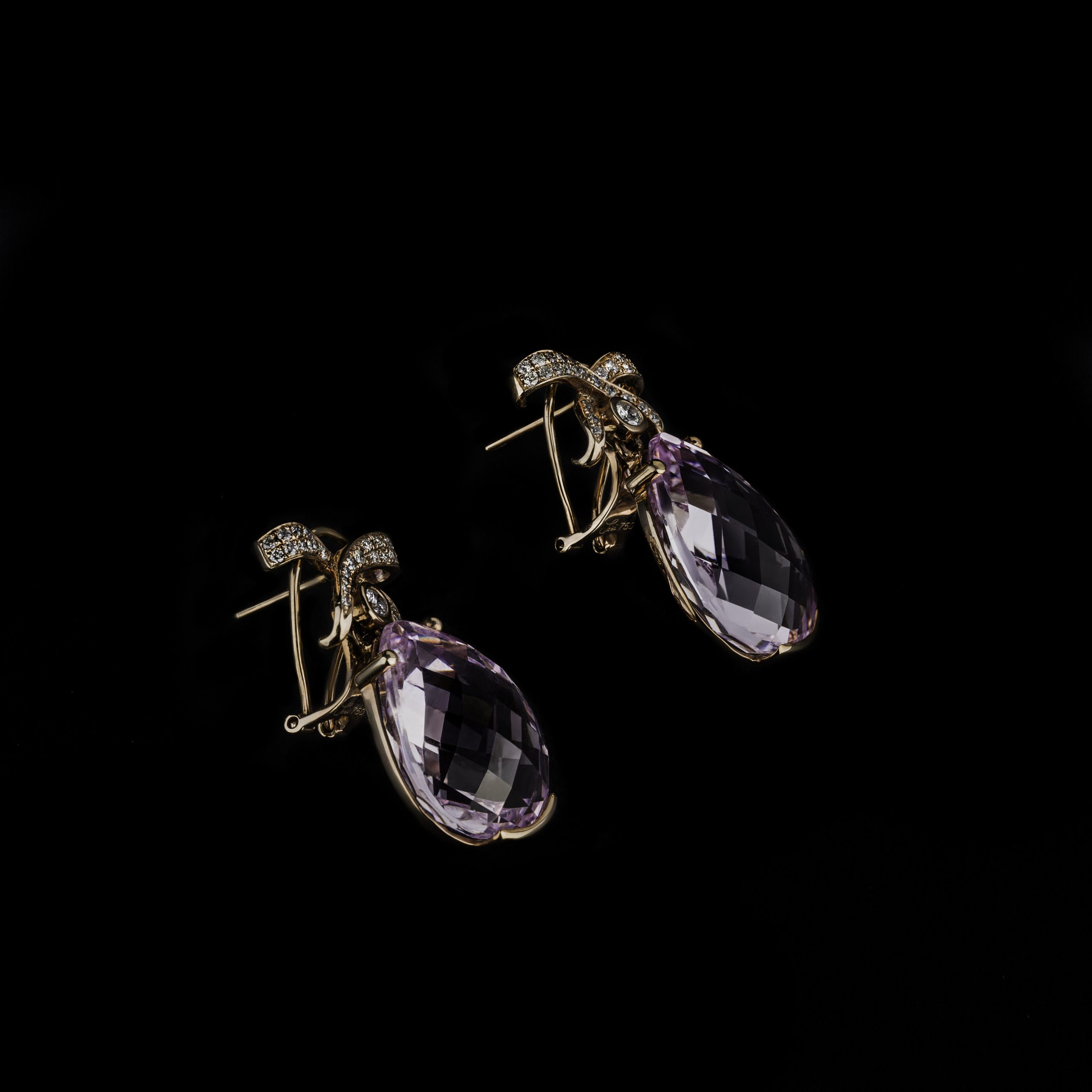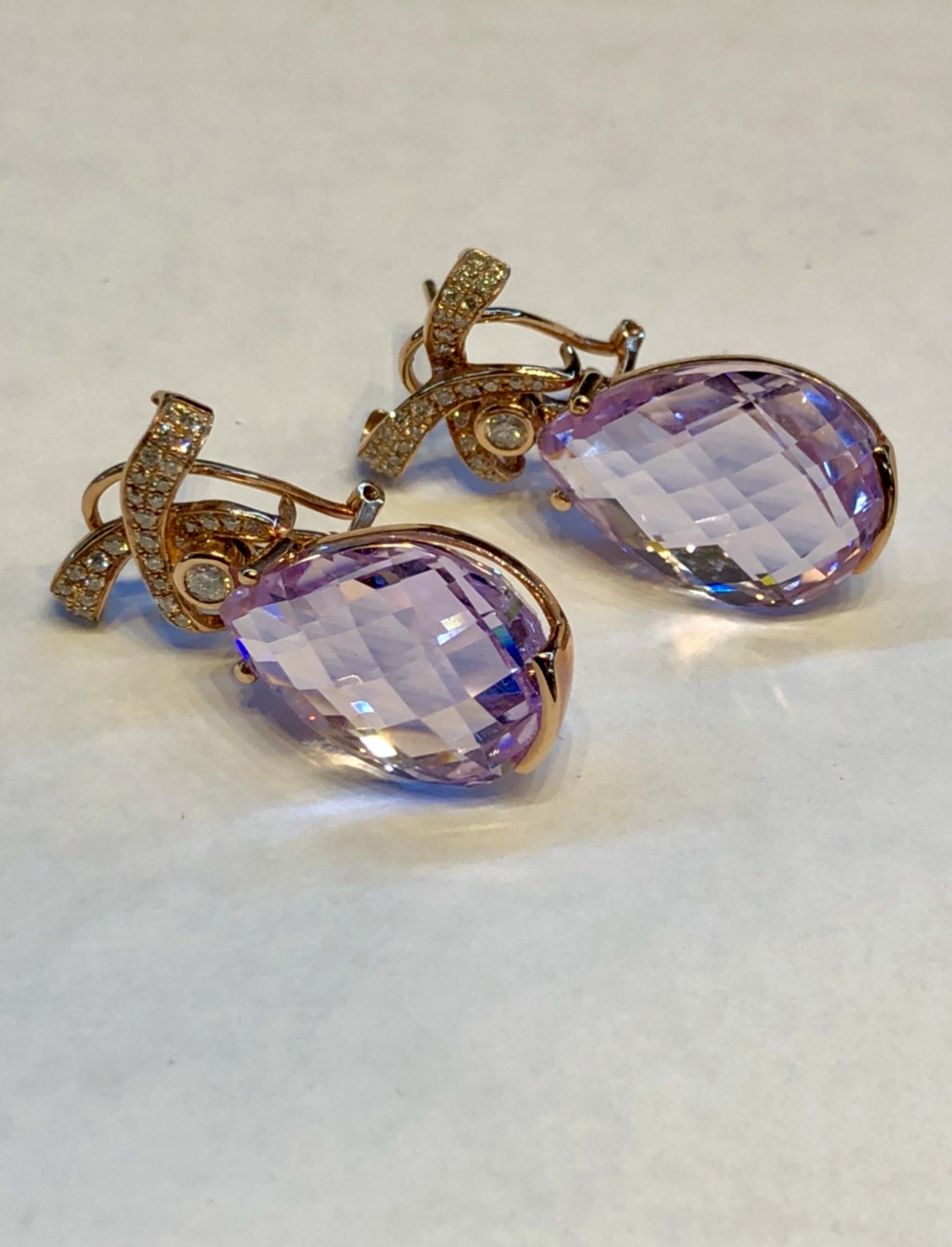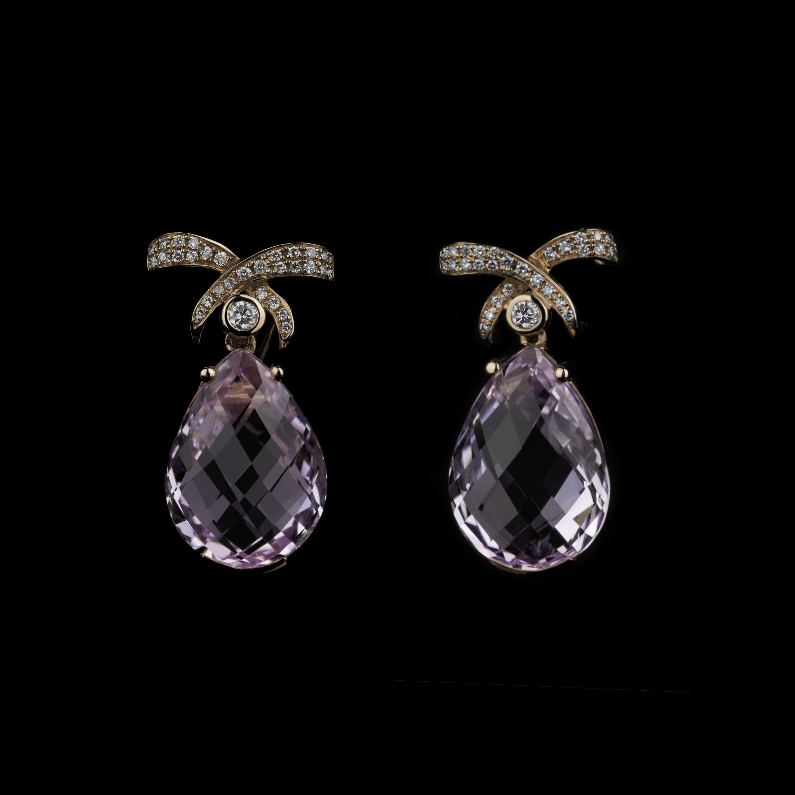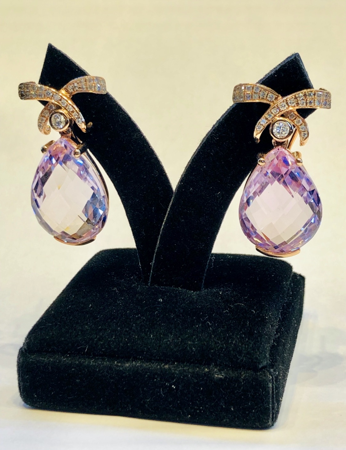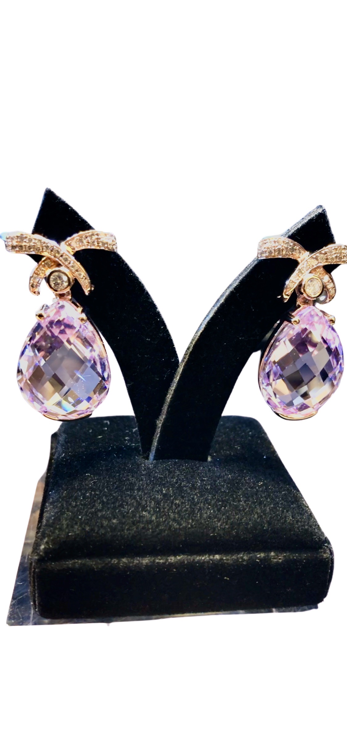 18K yellow gold 35.00ct Natural Kunzite and 1.25ct Diamond EarringsÂ