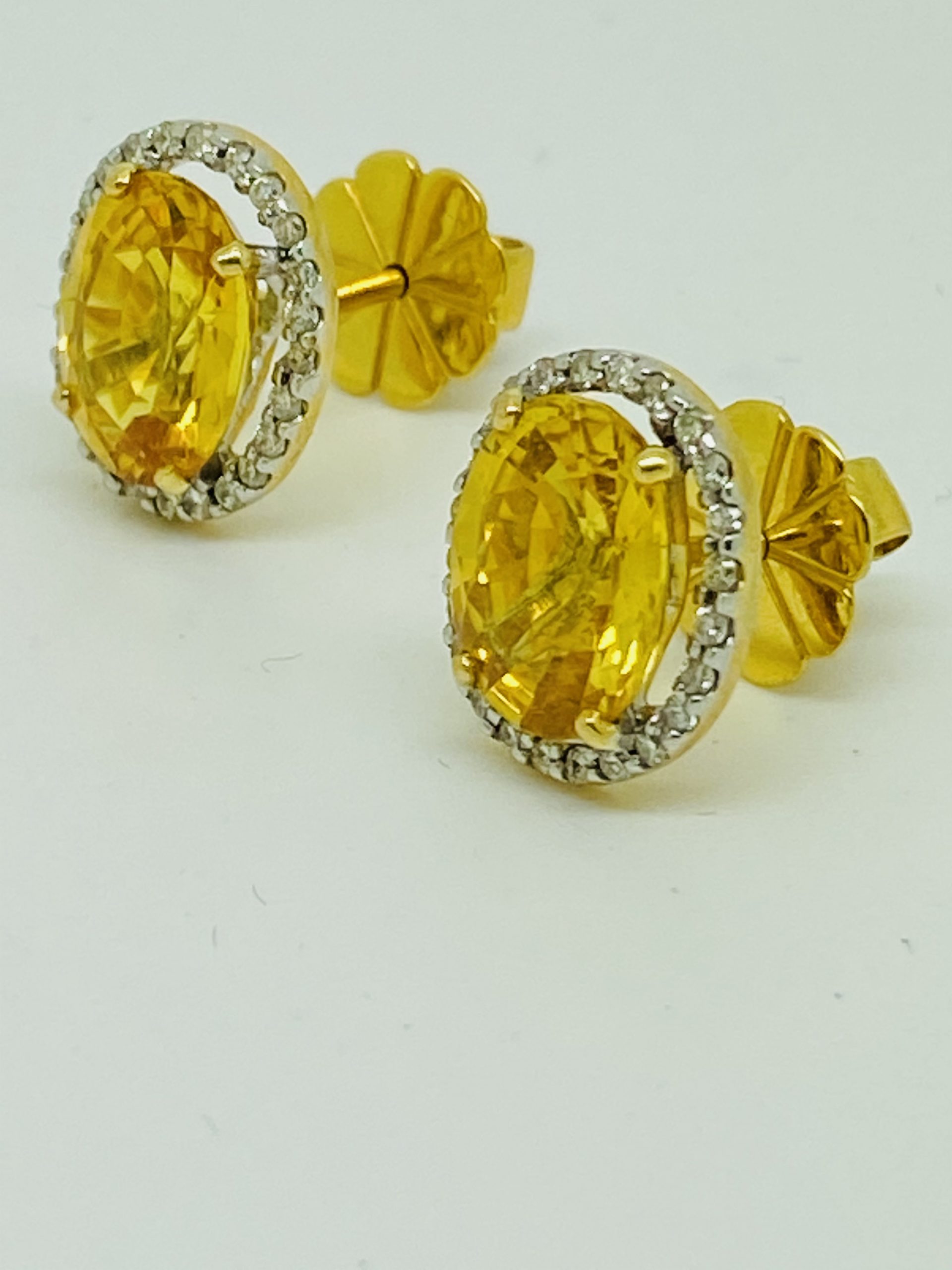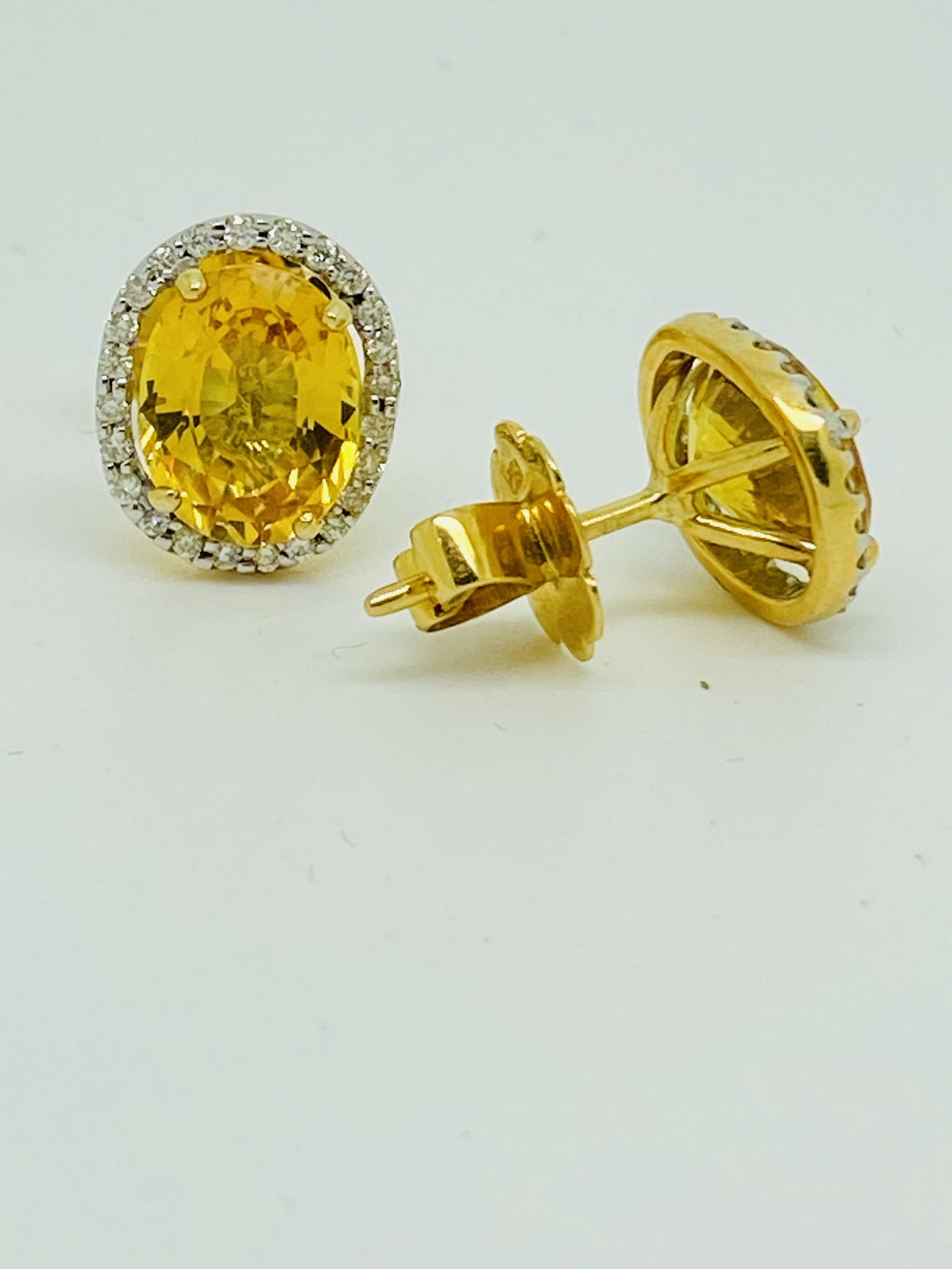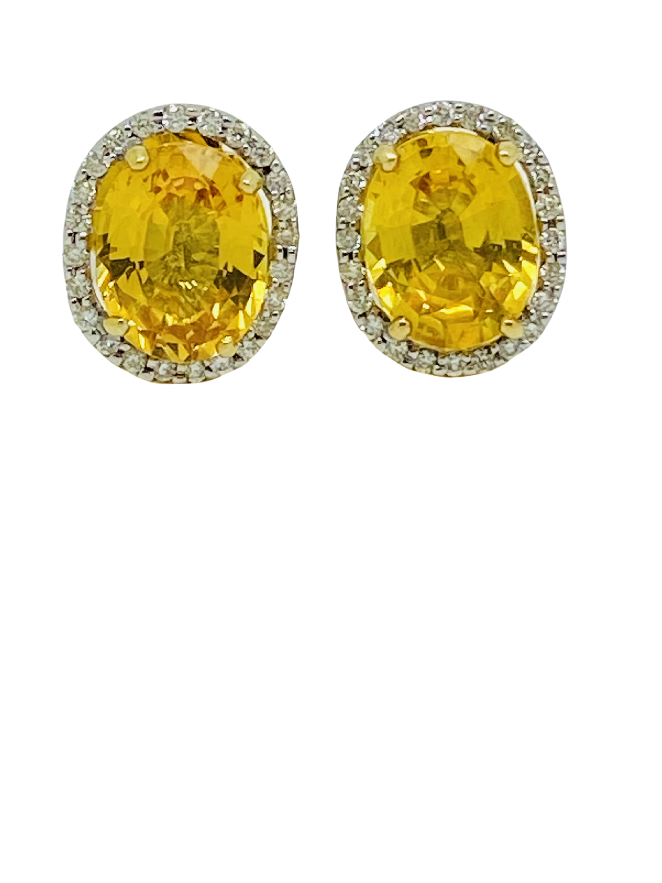 18K yellow gold, 7.16ct Natural Yellow Sapphire and 0.36ct Diamond EarringsÂ