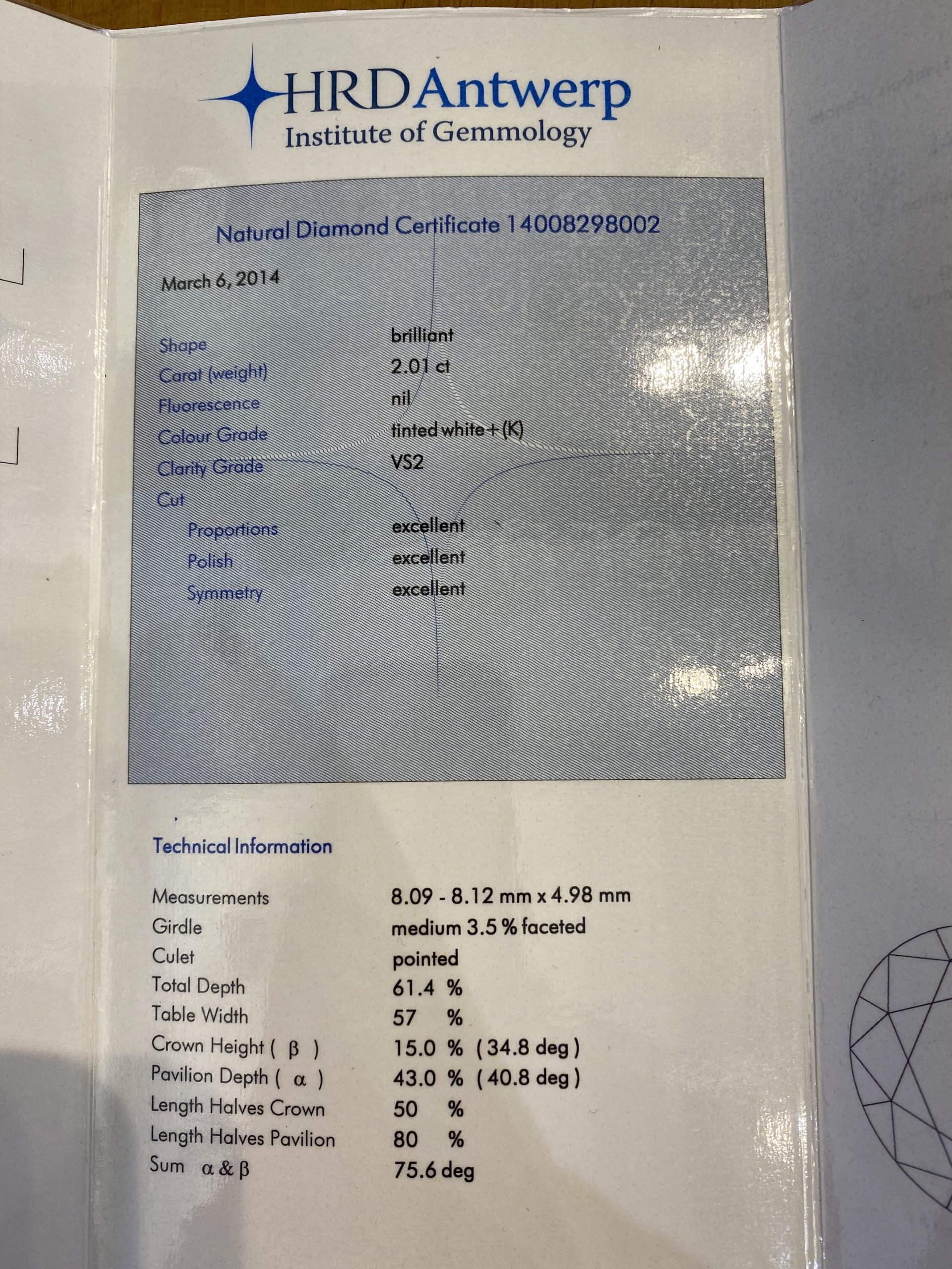 18K white gold, 2.01ct Diamond Solitaire RingÂ
