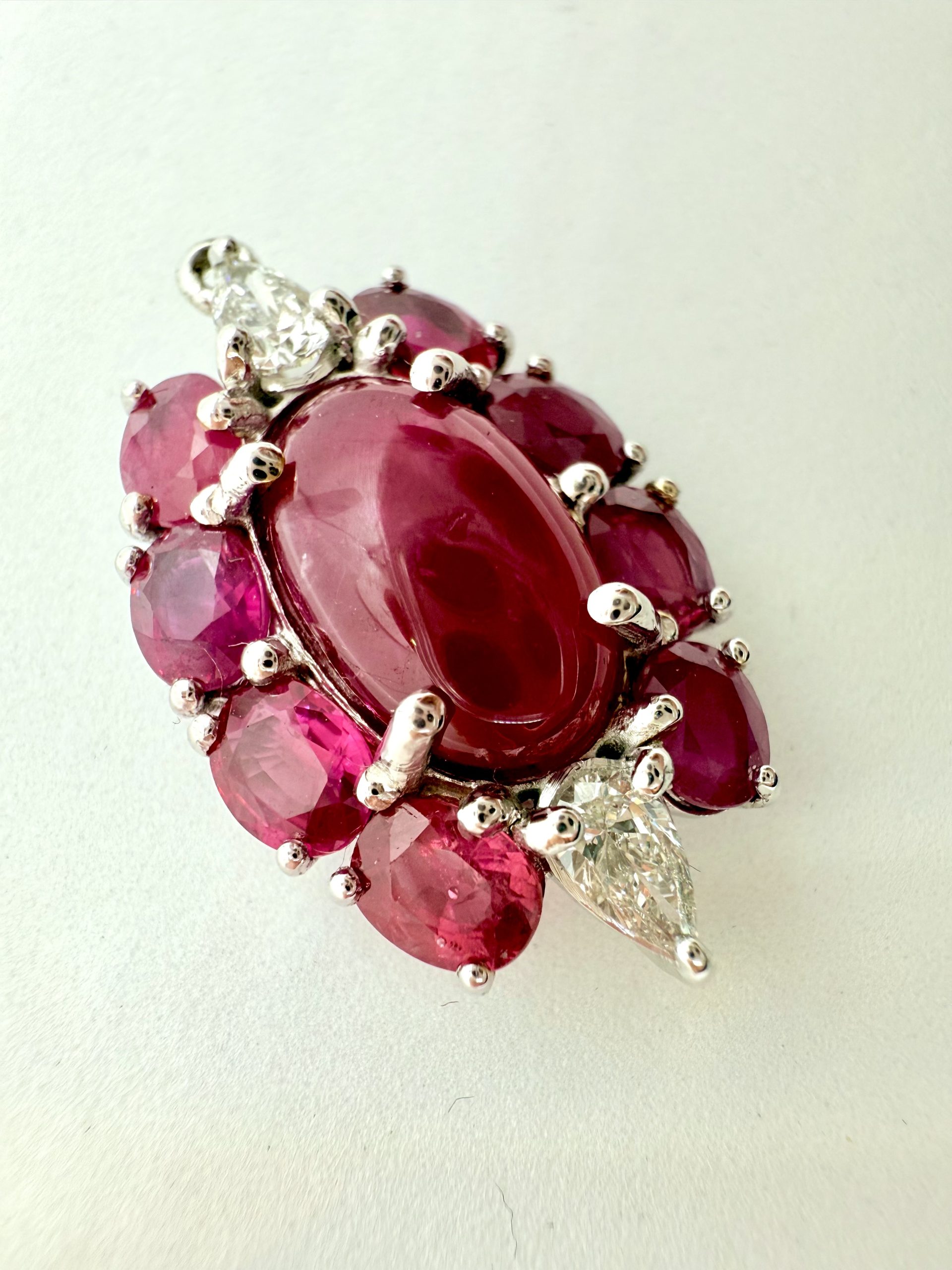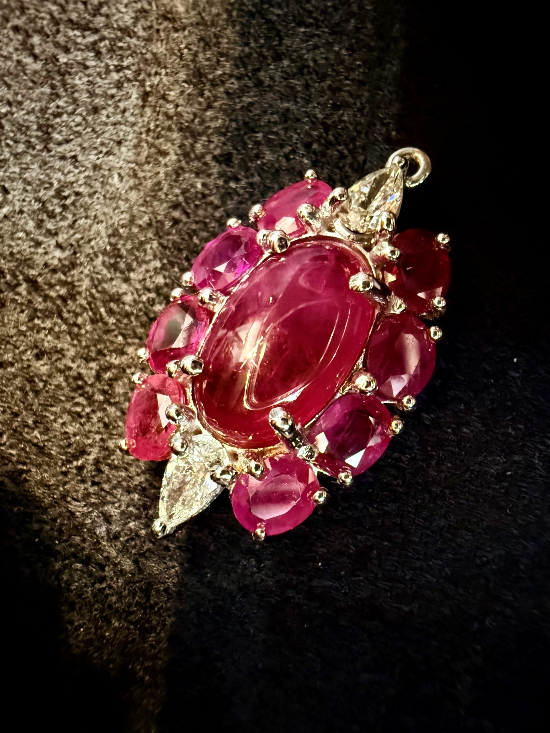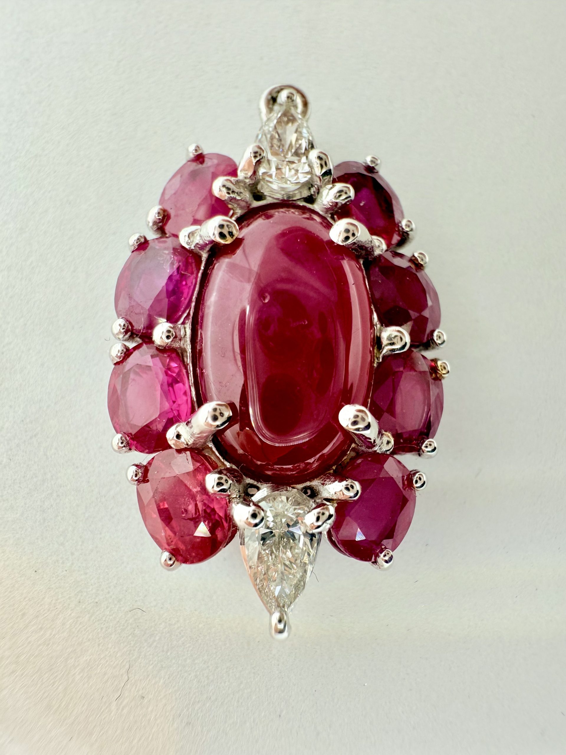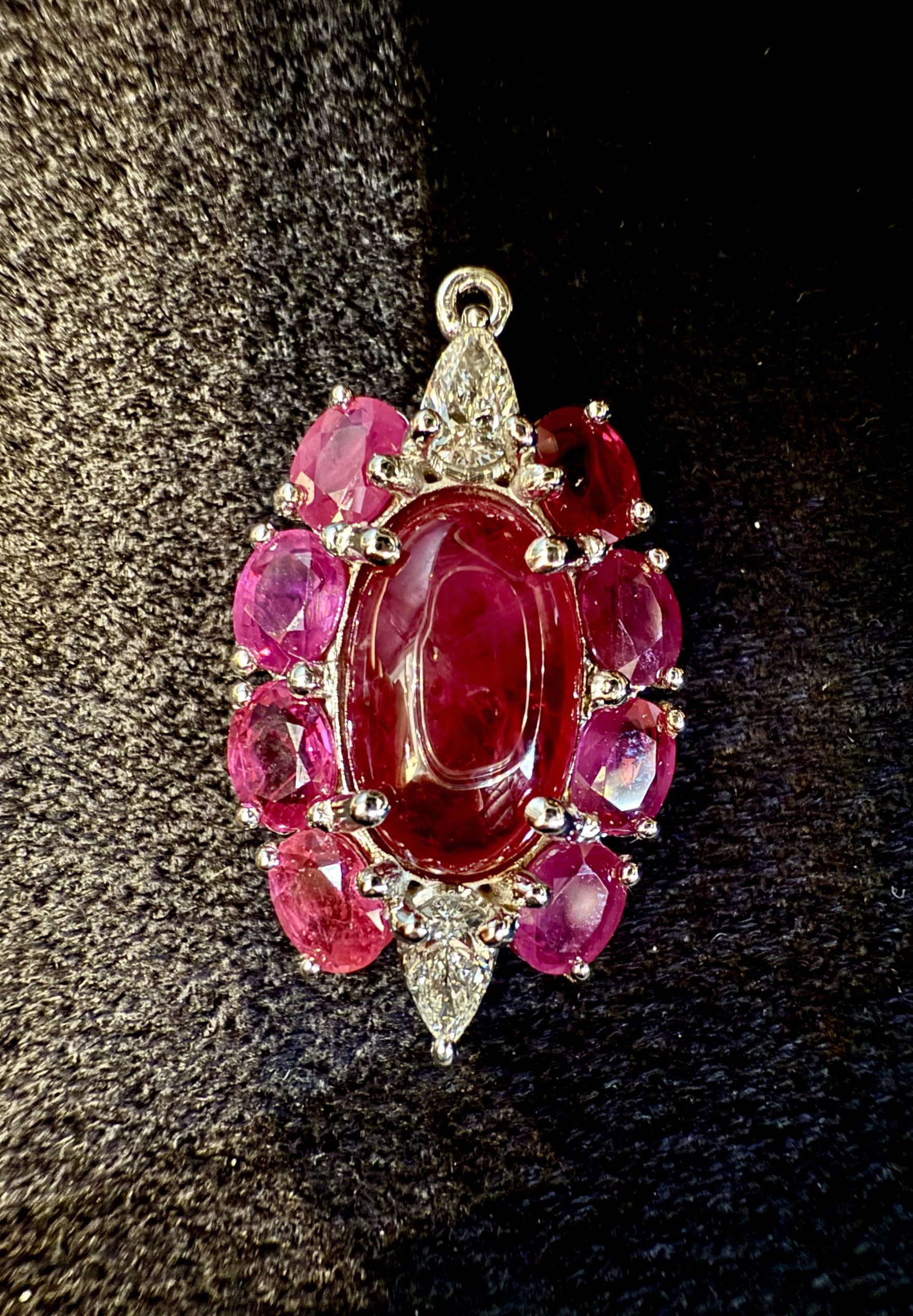 18K white Gold, 7.09ct Natural Burma Ruby & 0.31ct Diamond Necklace.