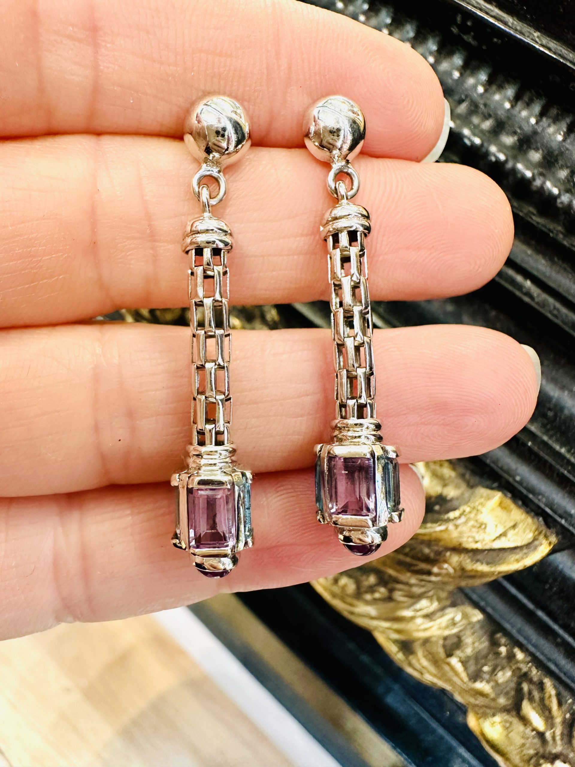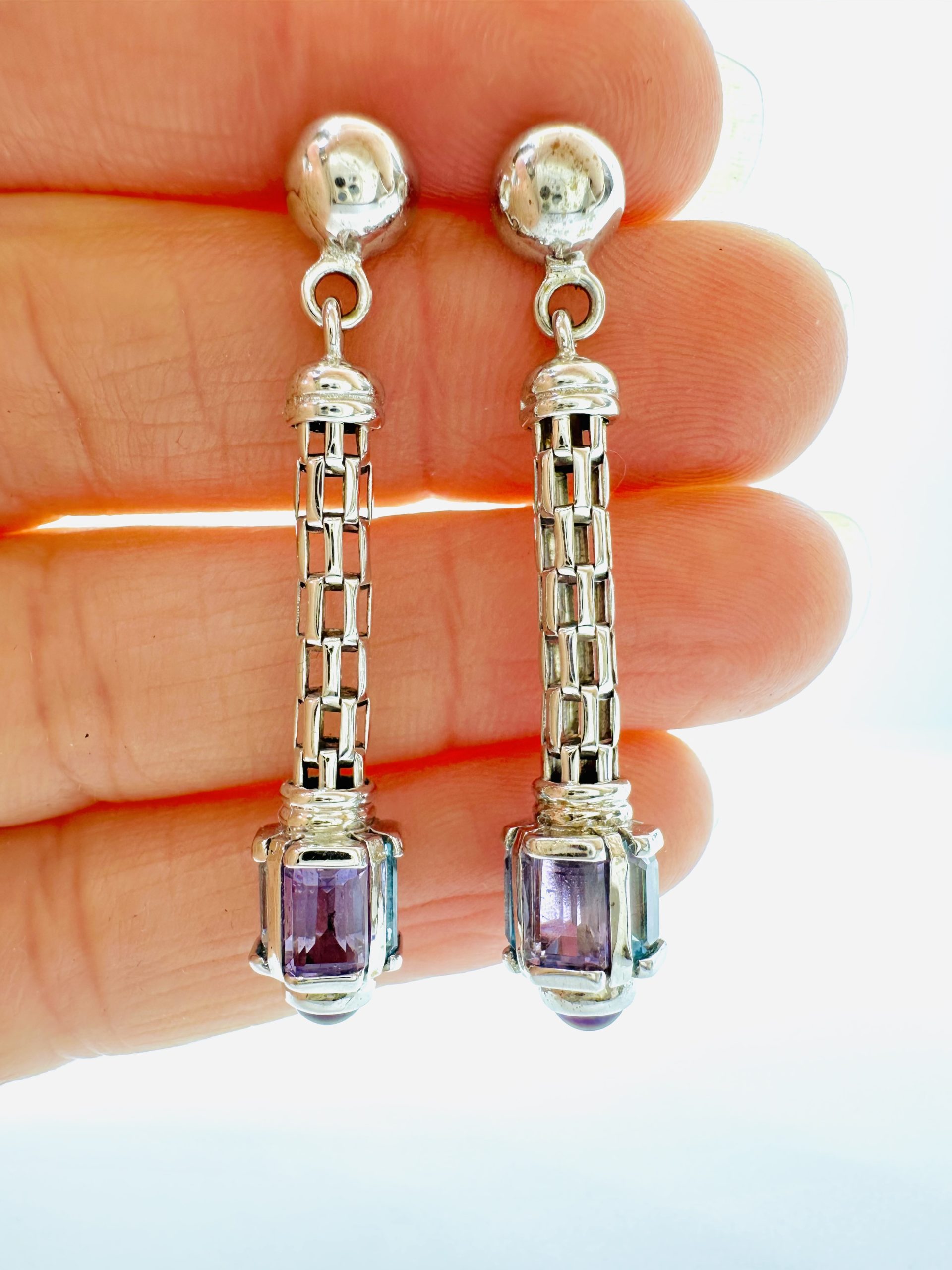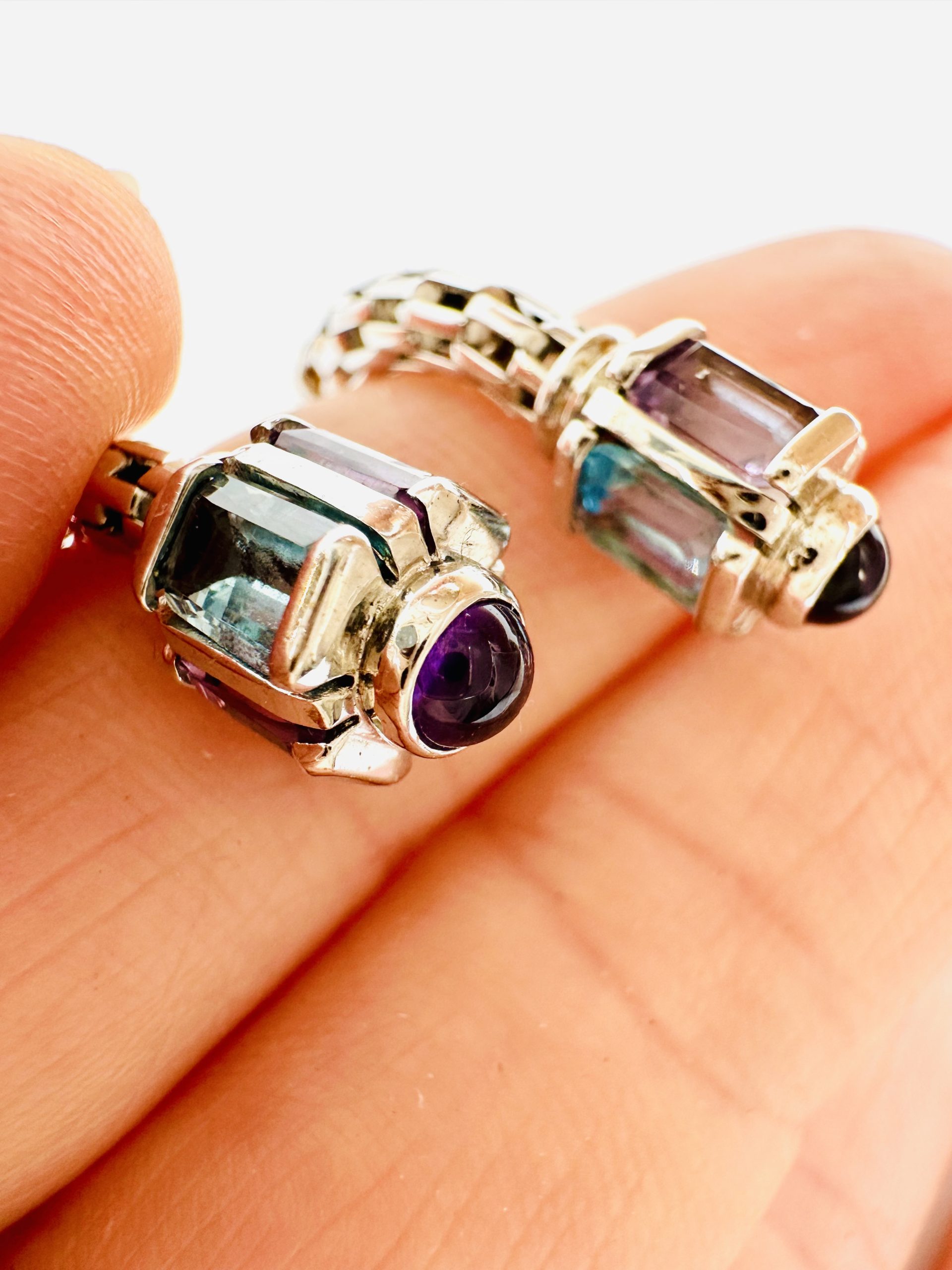 9K white gold Amethyst and Topaz EarringsÂ