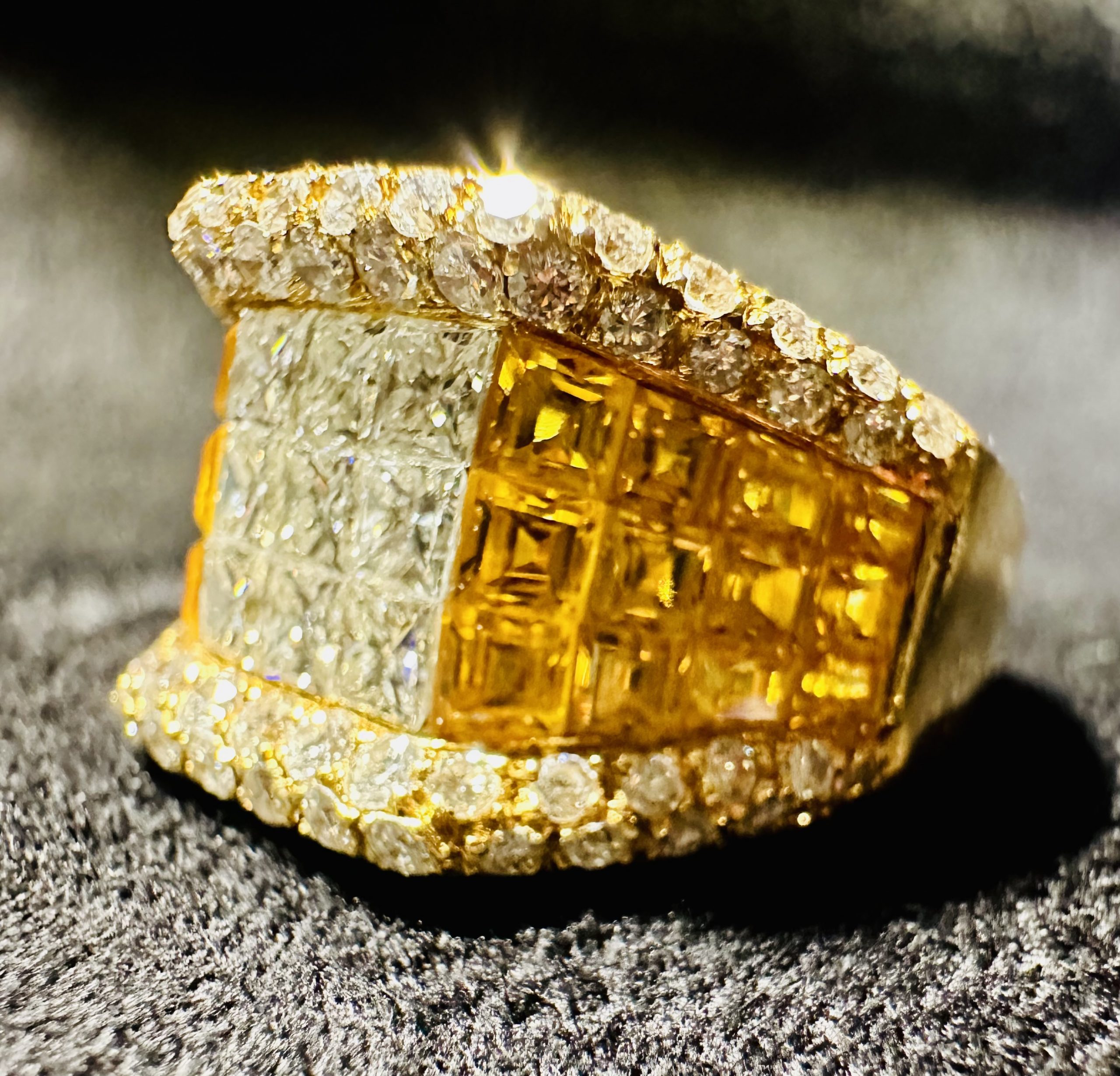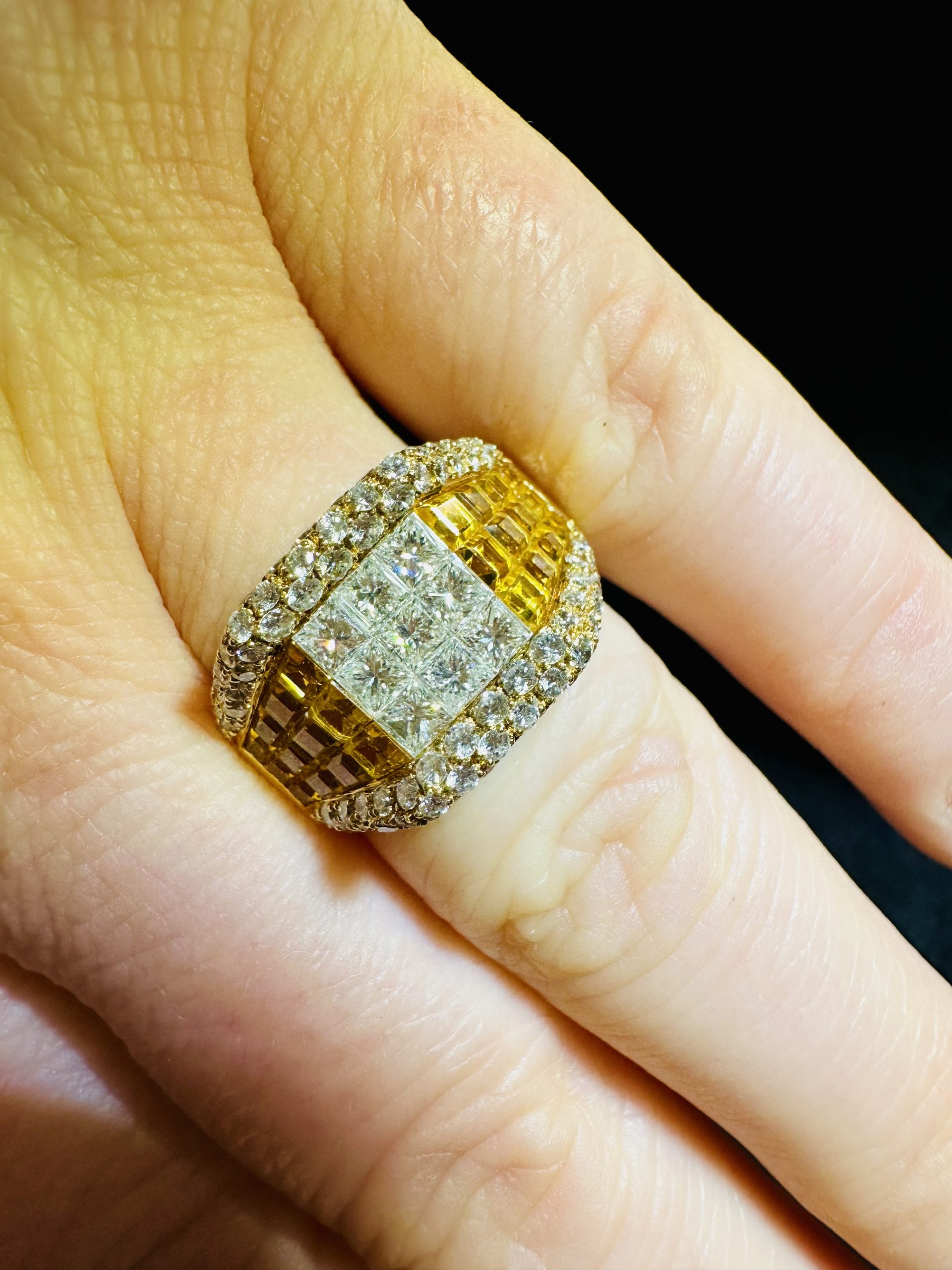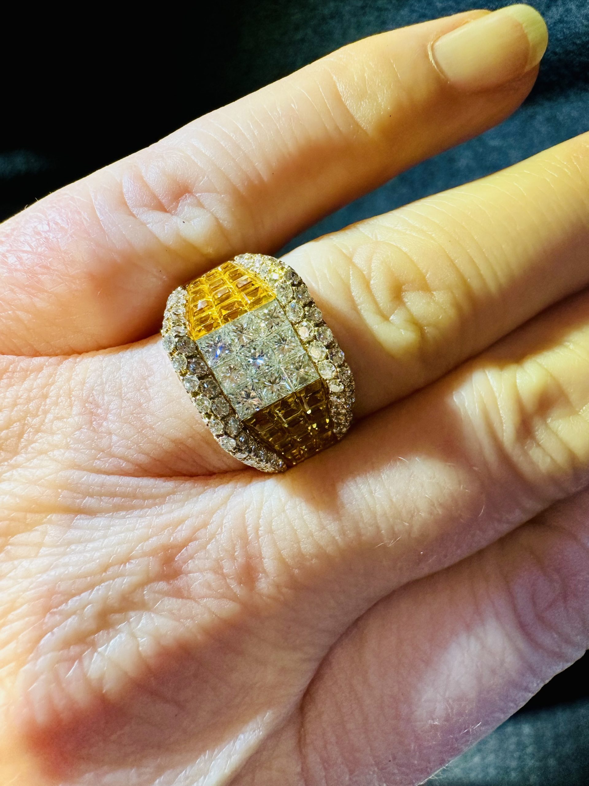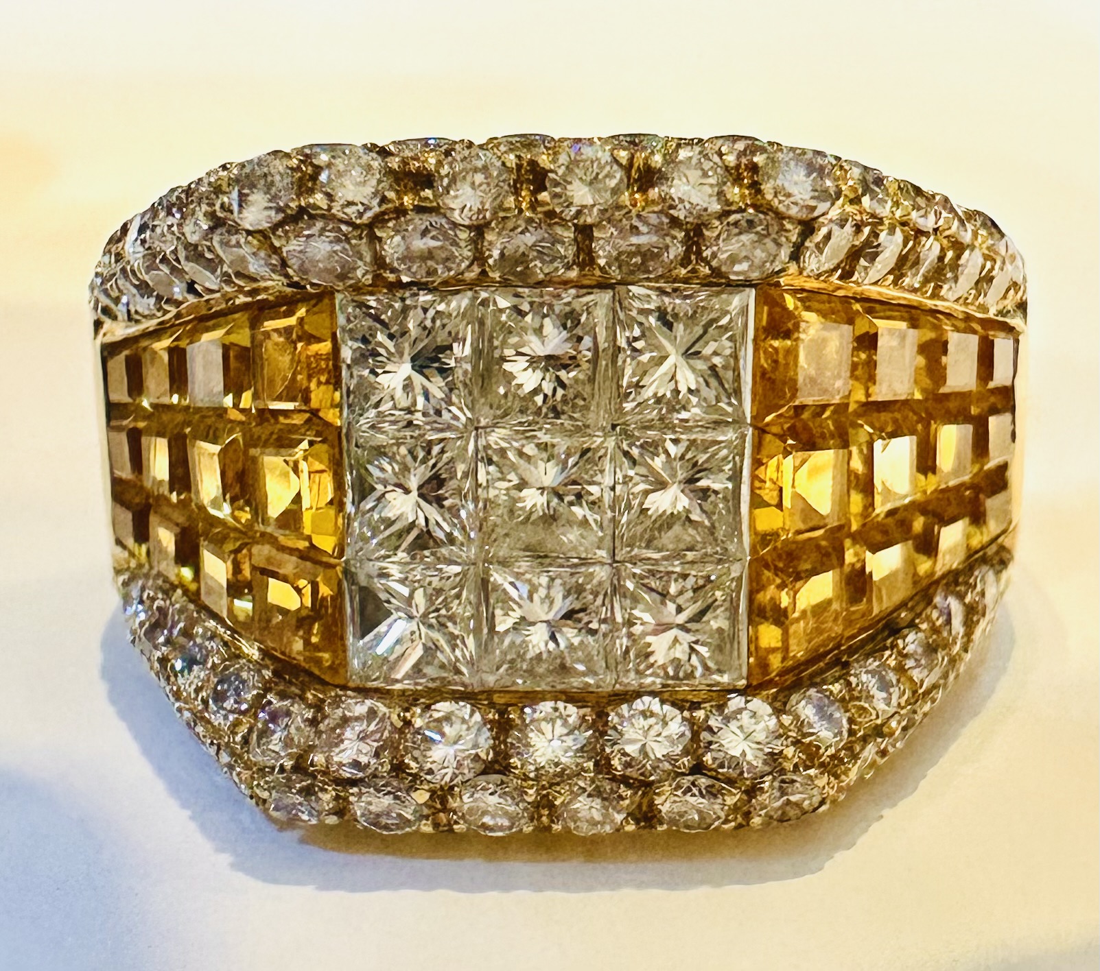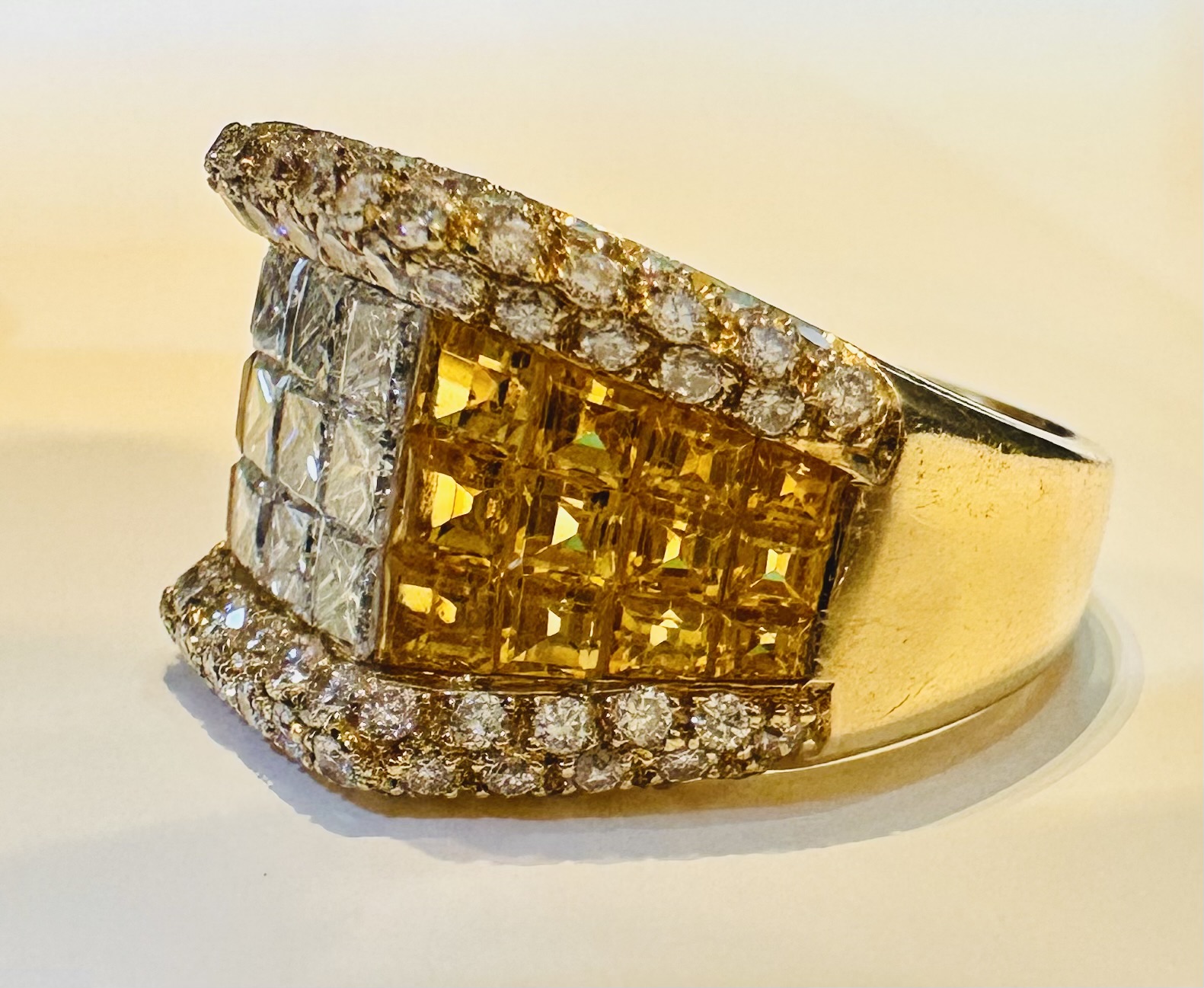 Diamond & Yellow Sapphire Ring, 18K yellow gold.