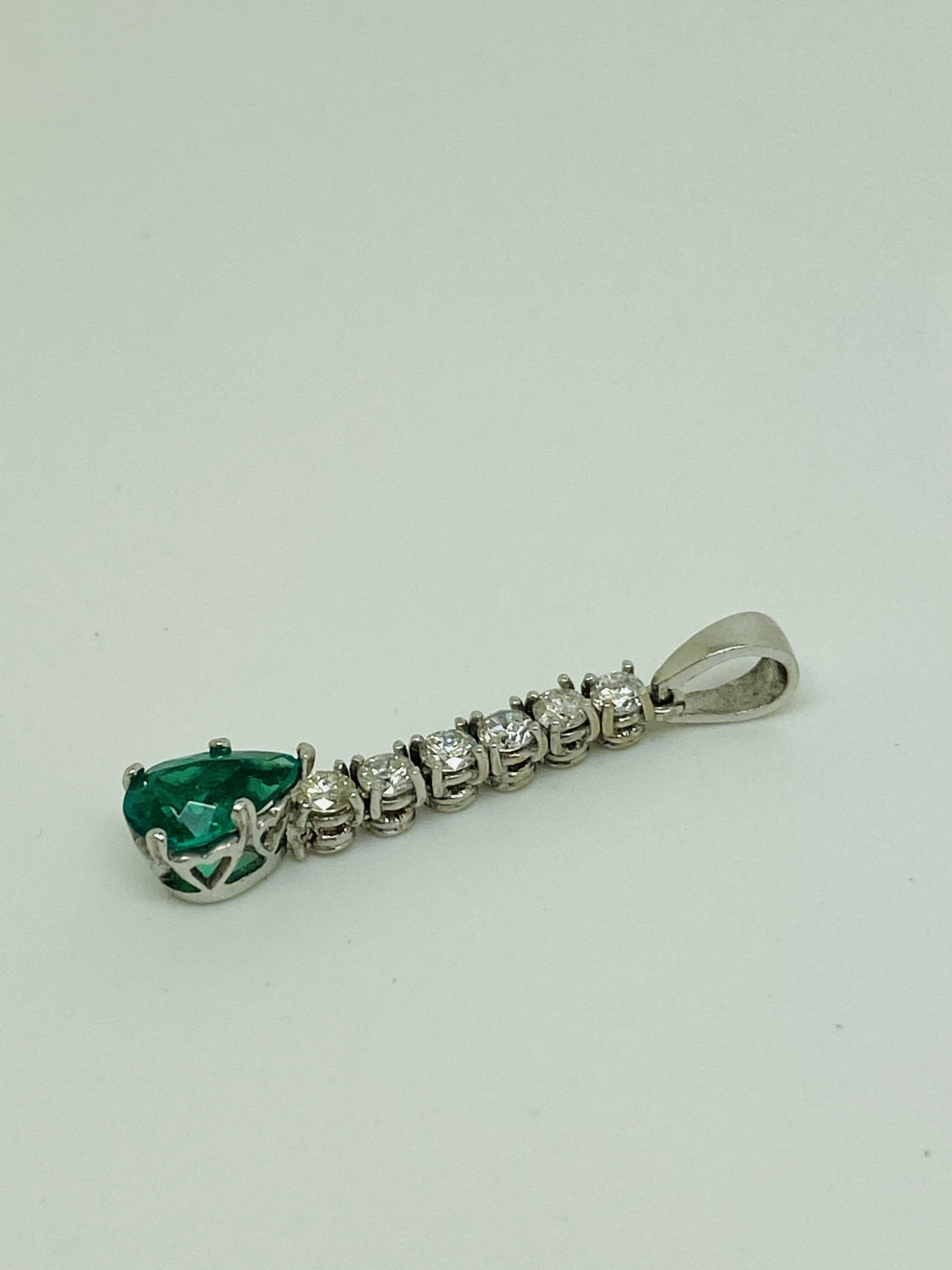 18K white gold, 1.00ct Natural Emerald and 0.60ct Diamond Necklace.