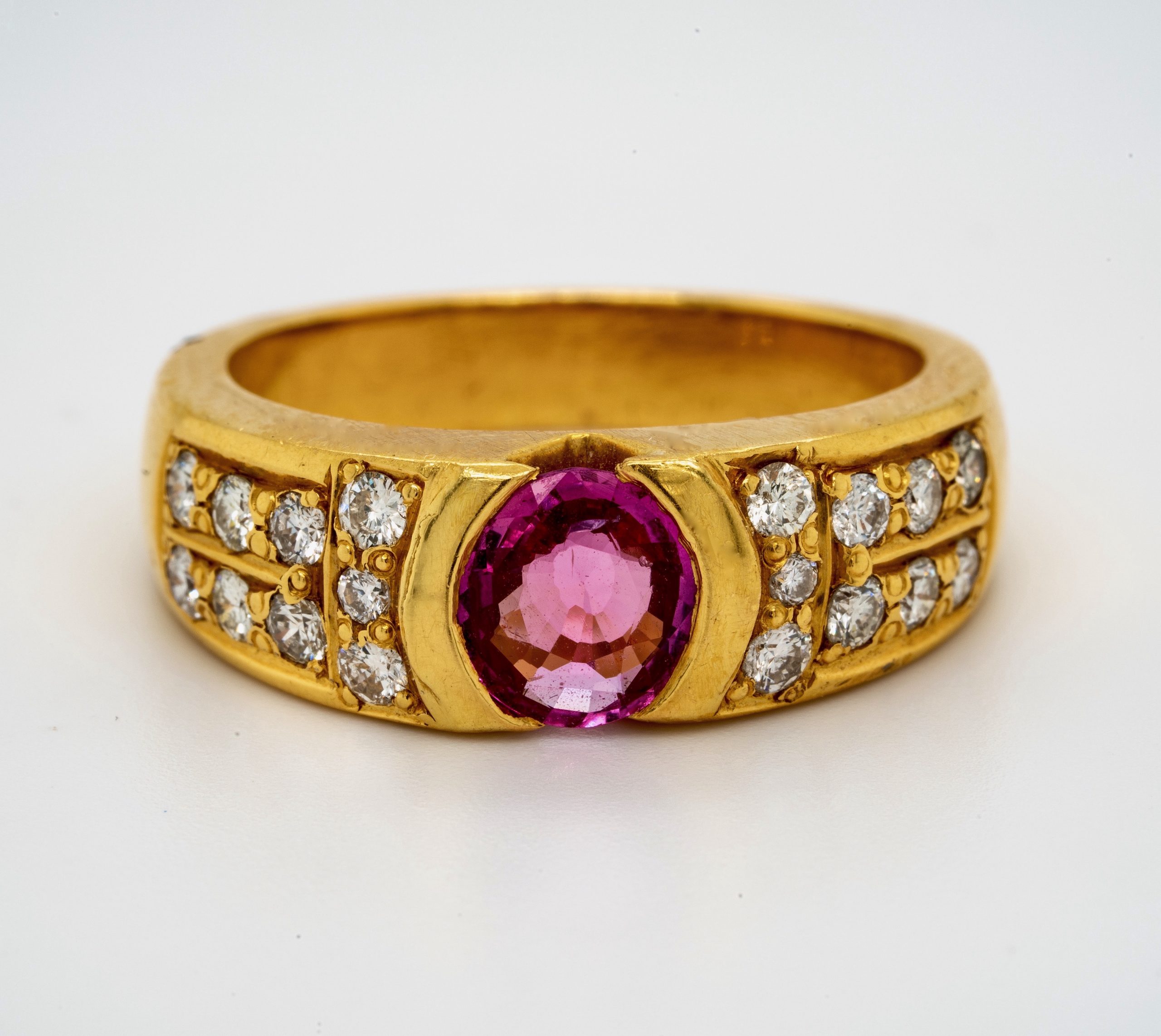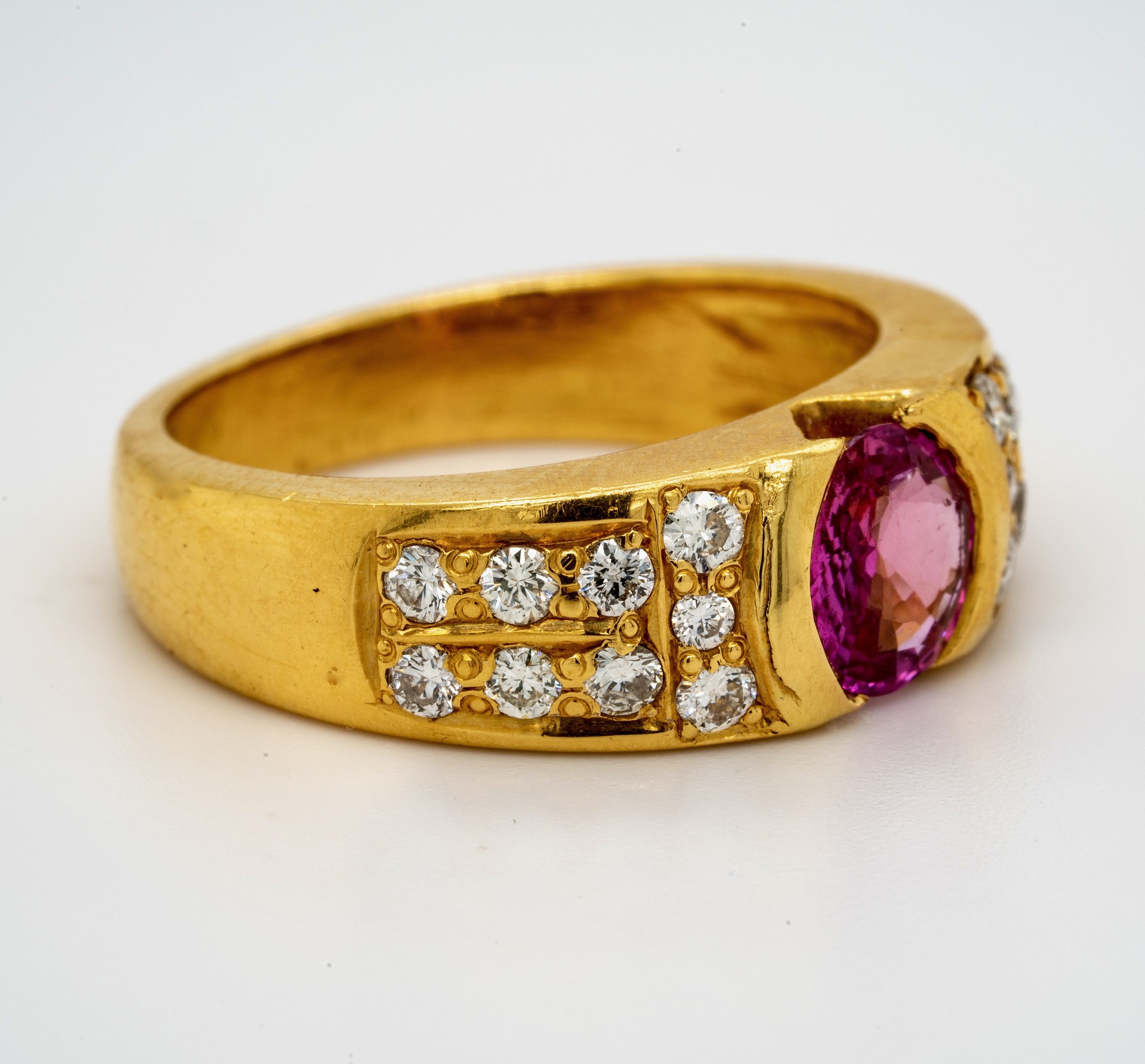 18K yellow gold, 2.10ct Natural Pink Sapphire and 0.60ct Diamonds Ring