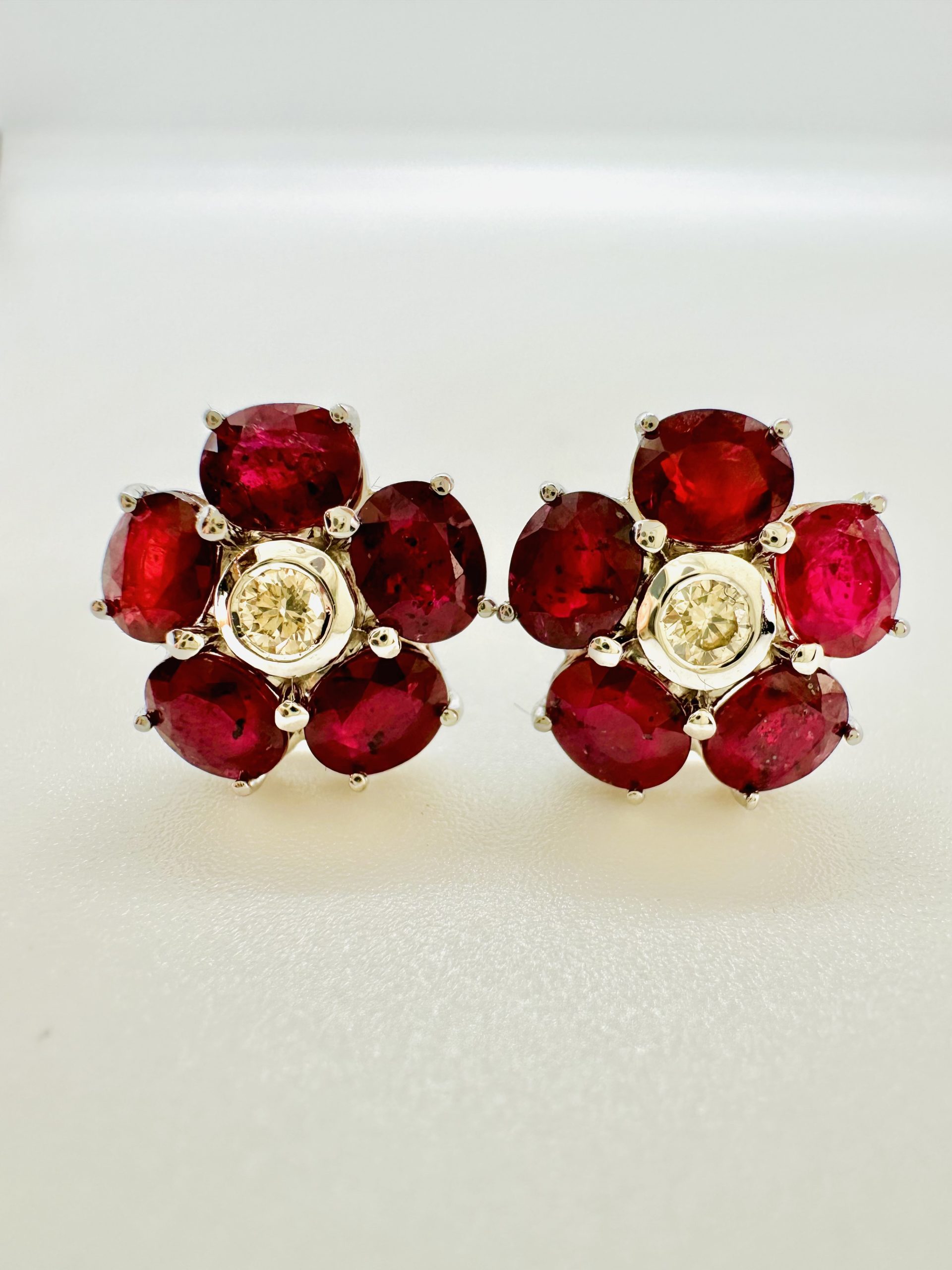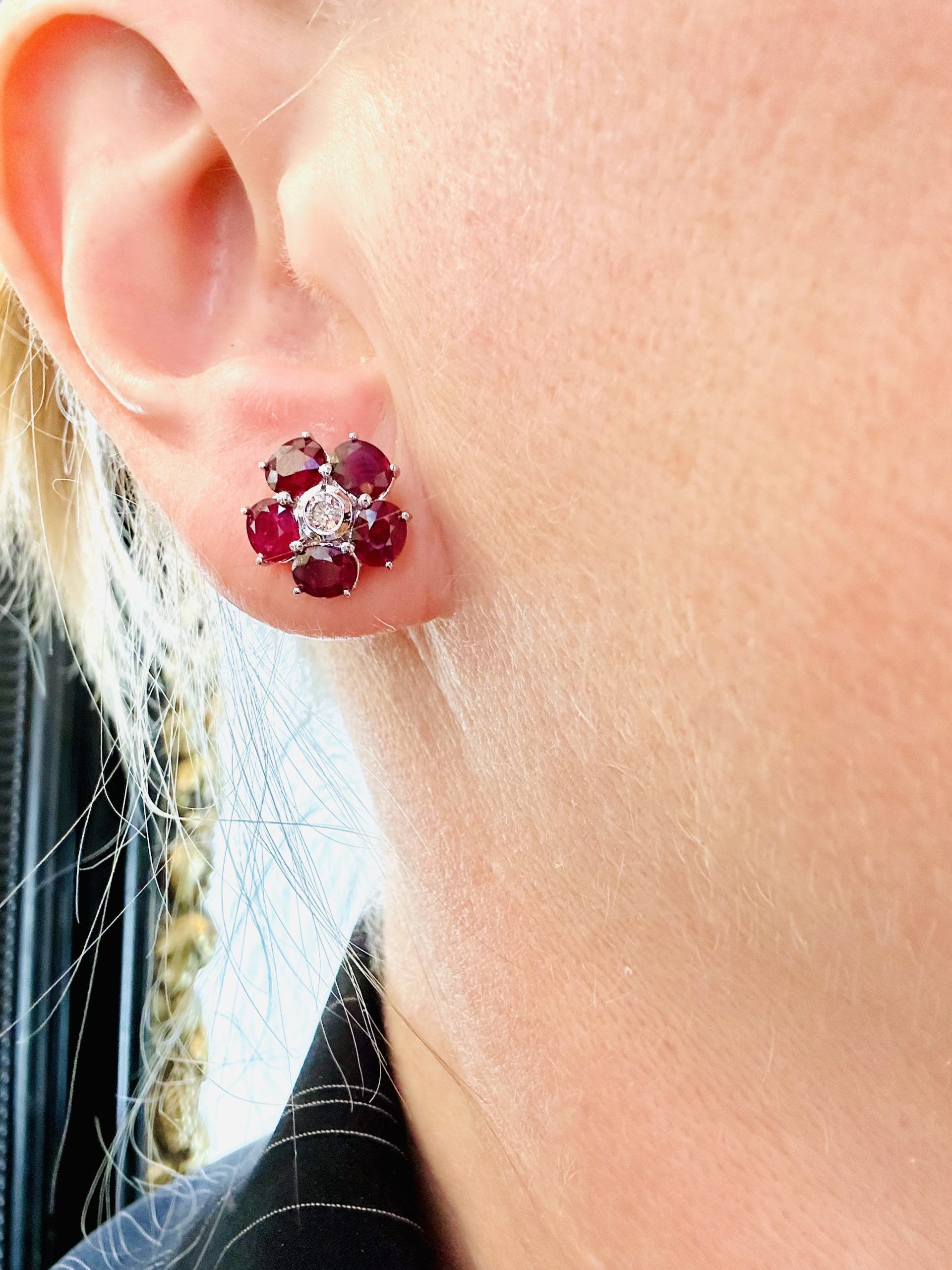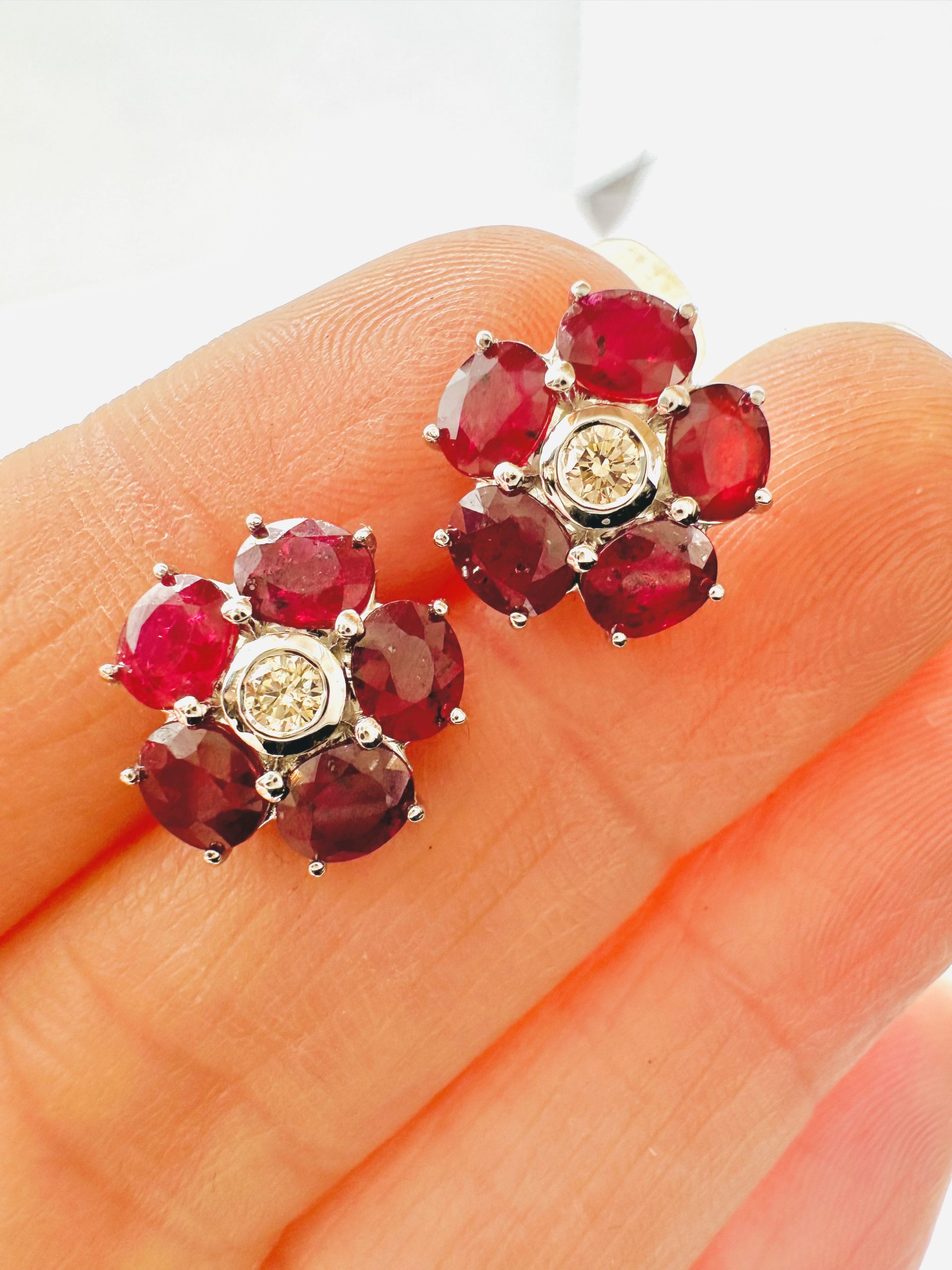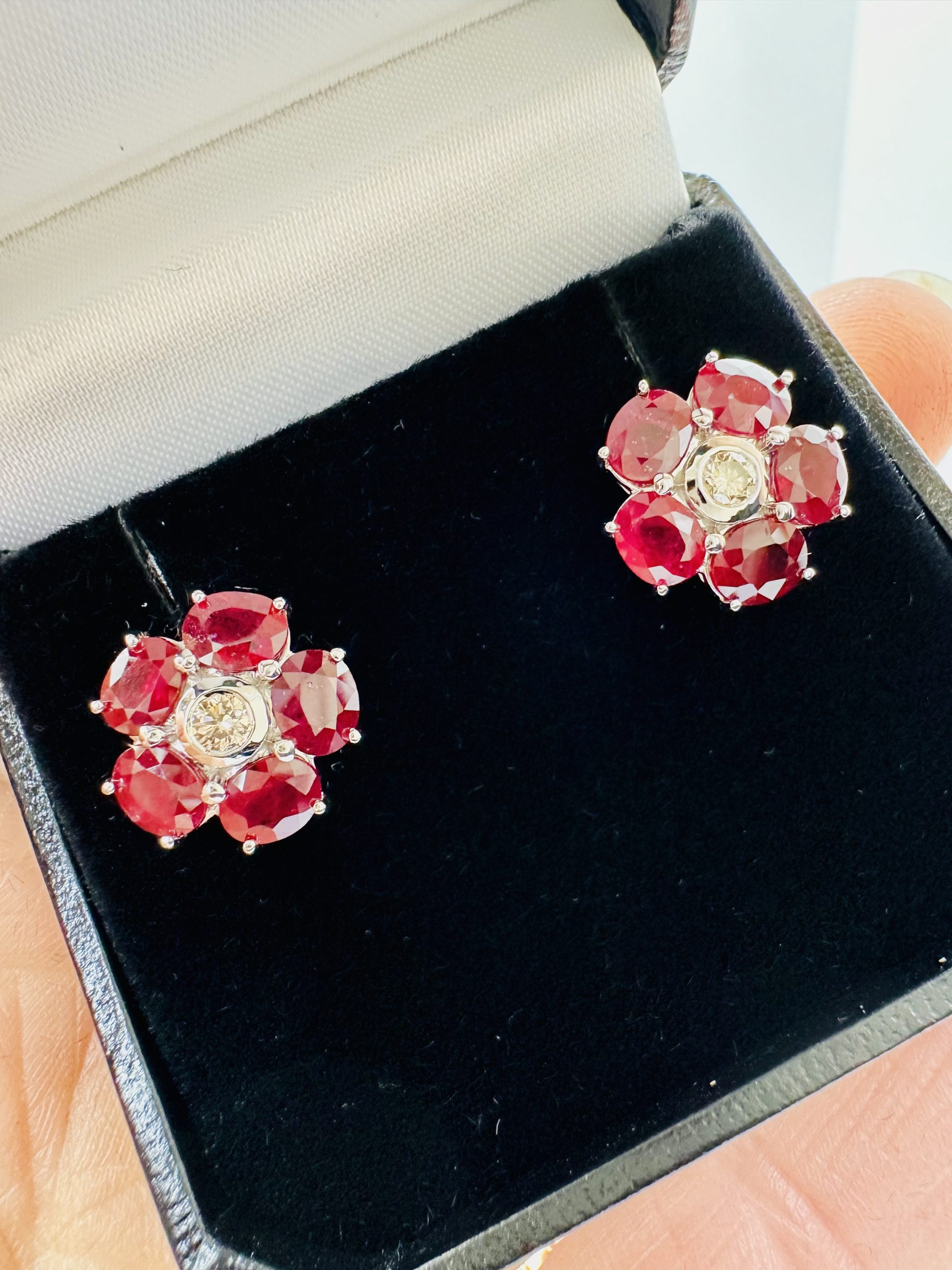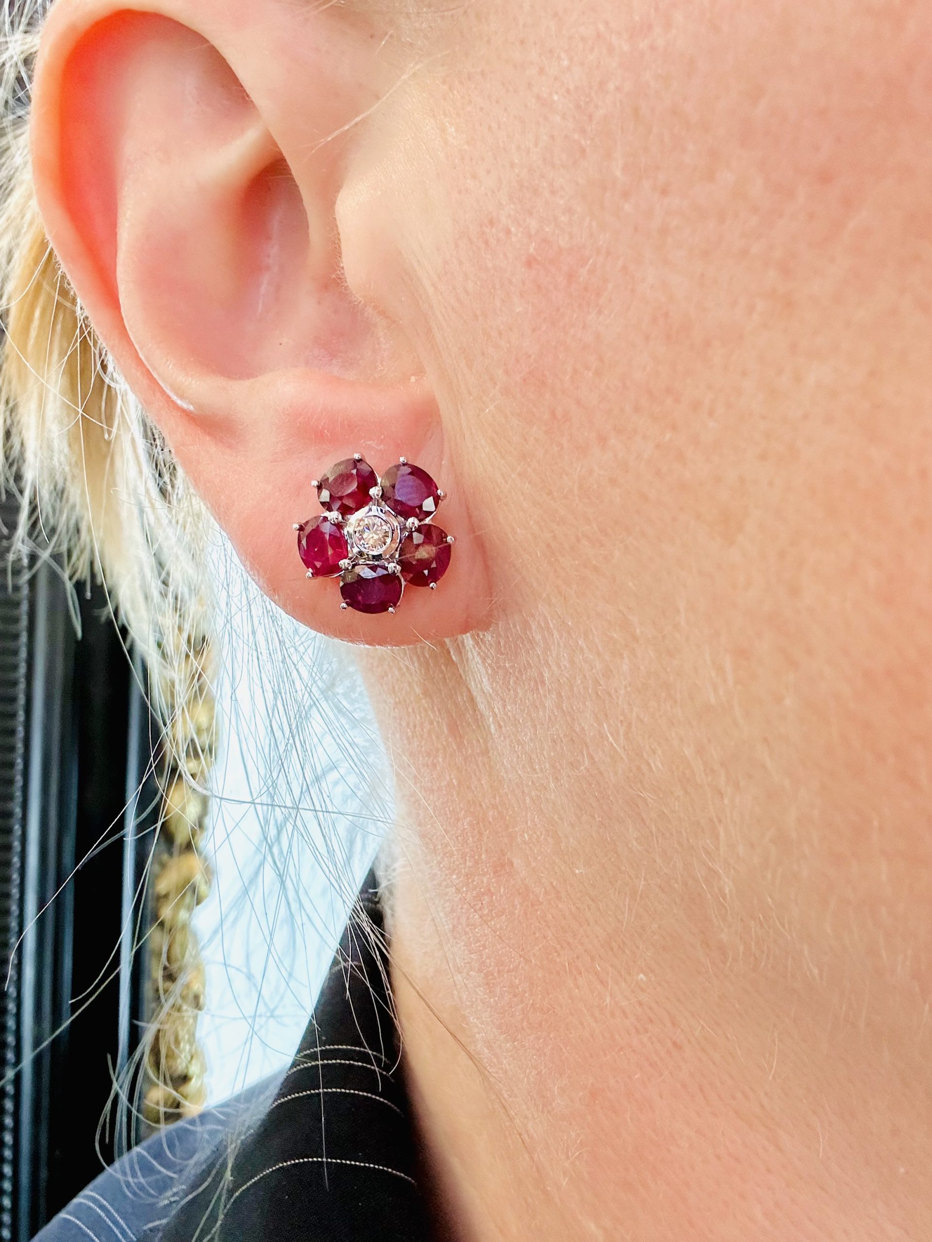 18K white gold, Natural Burma Ruby & Diamond Earrings.