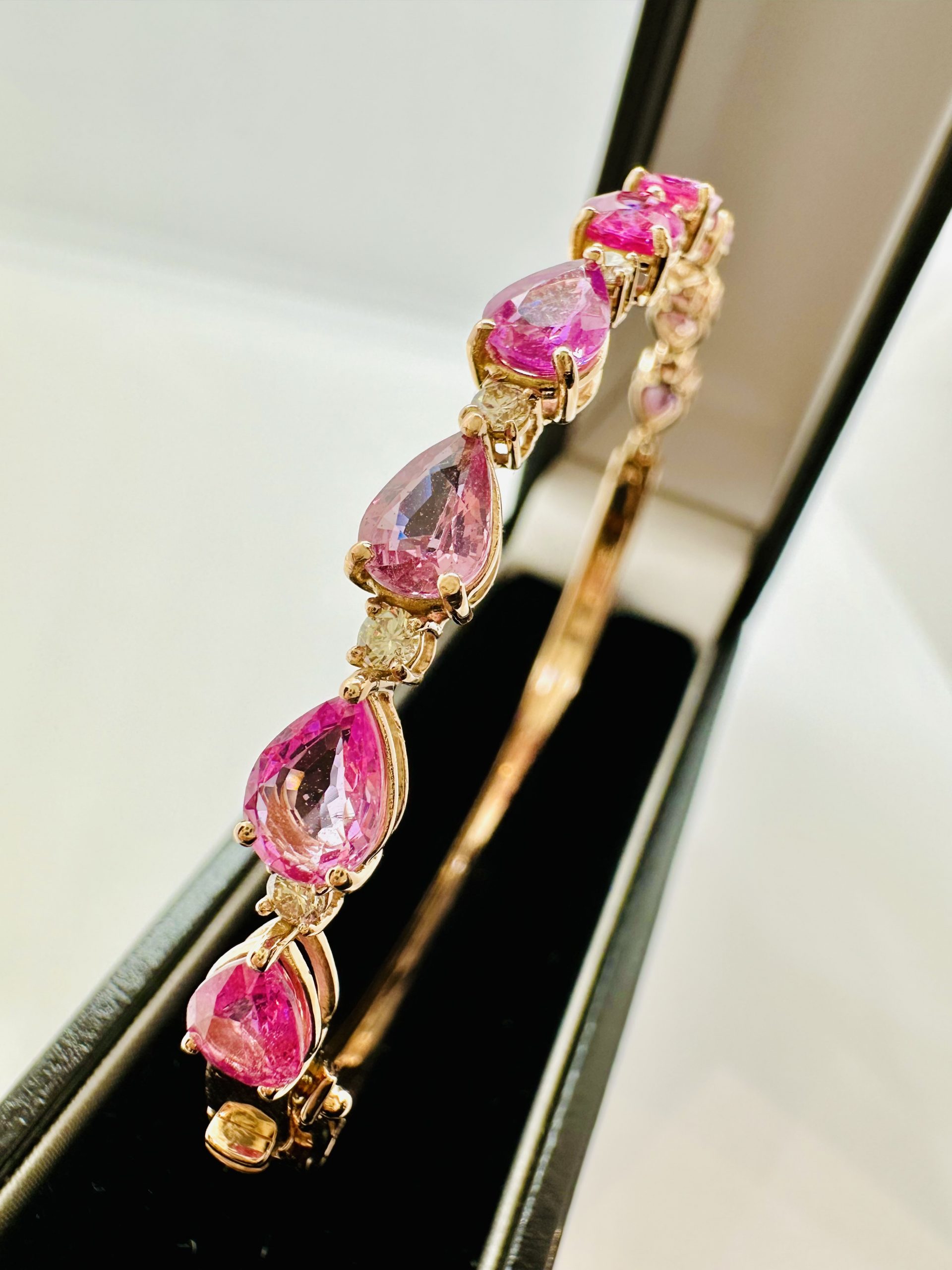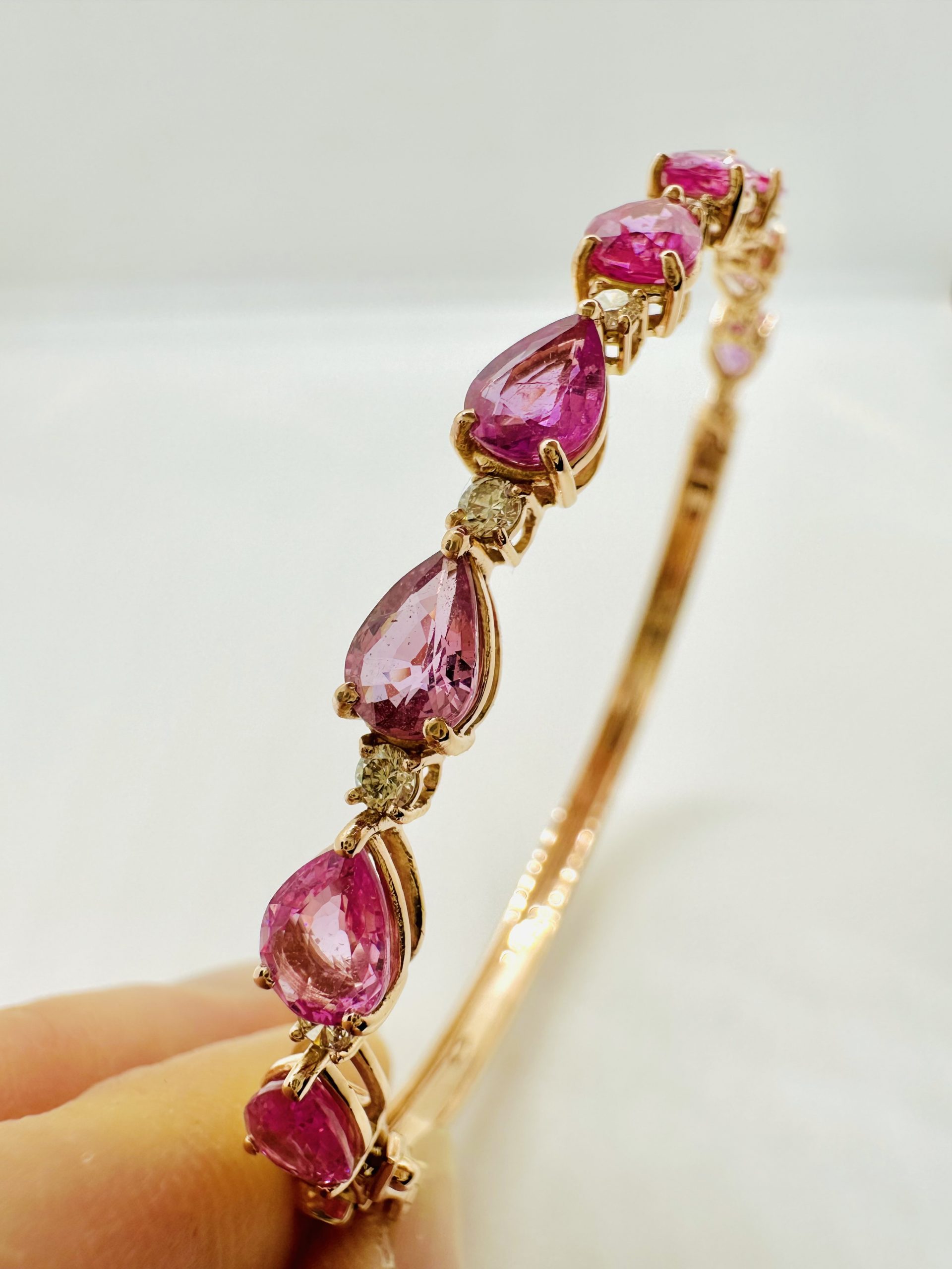 18K yellow gold, Natural Pink Sapphire & Diamond Bangle