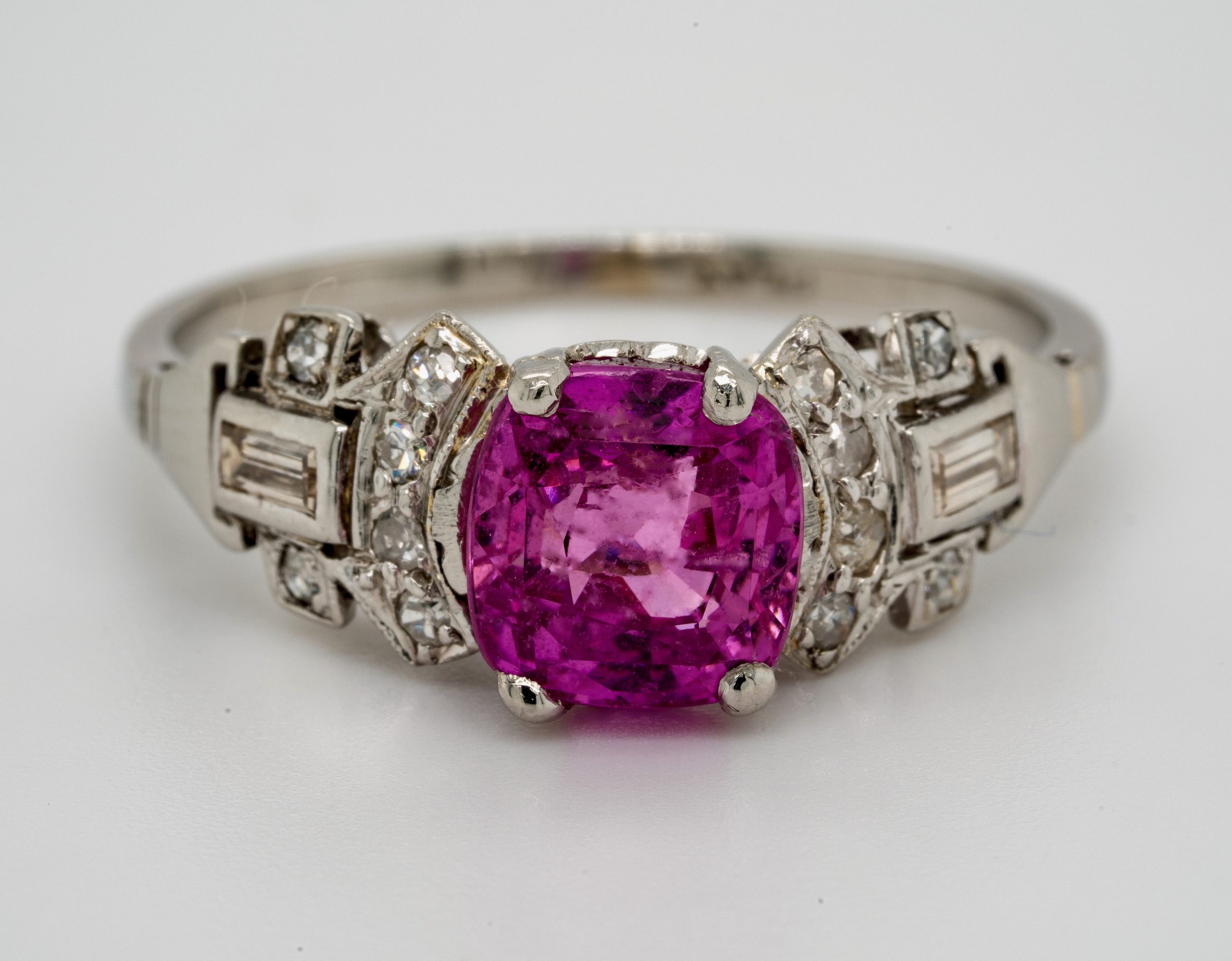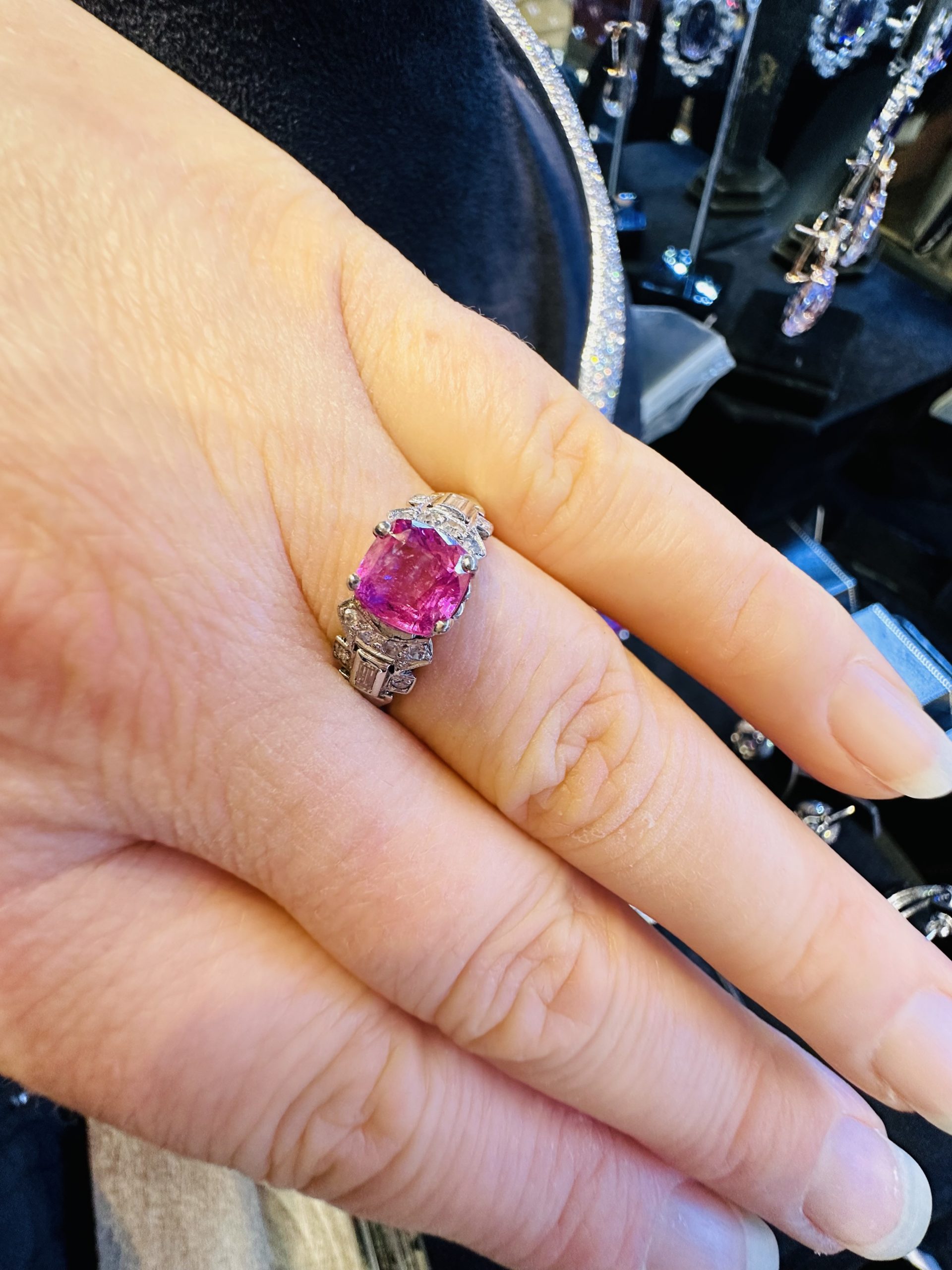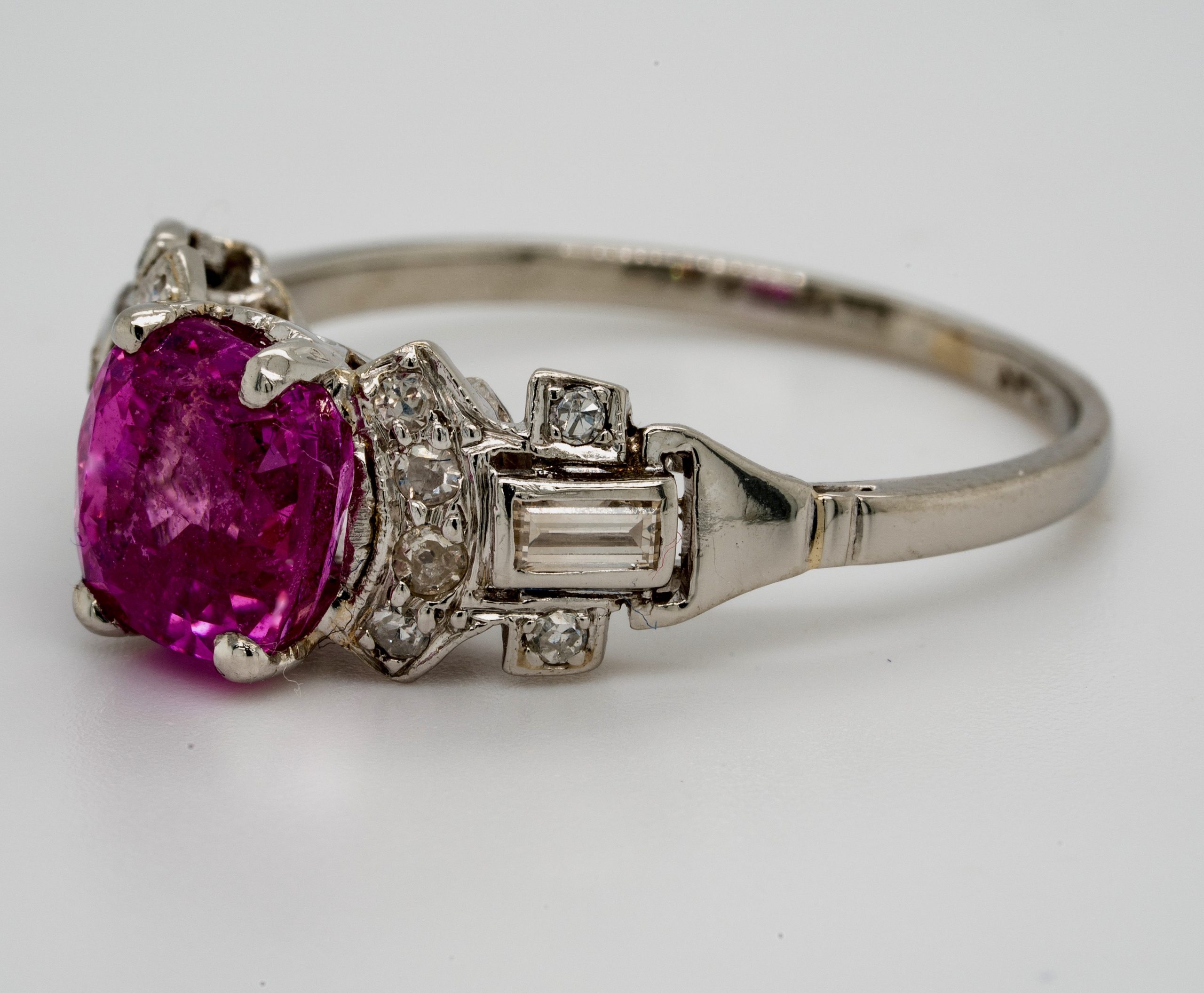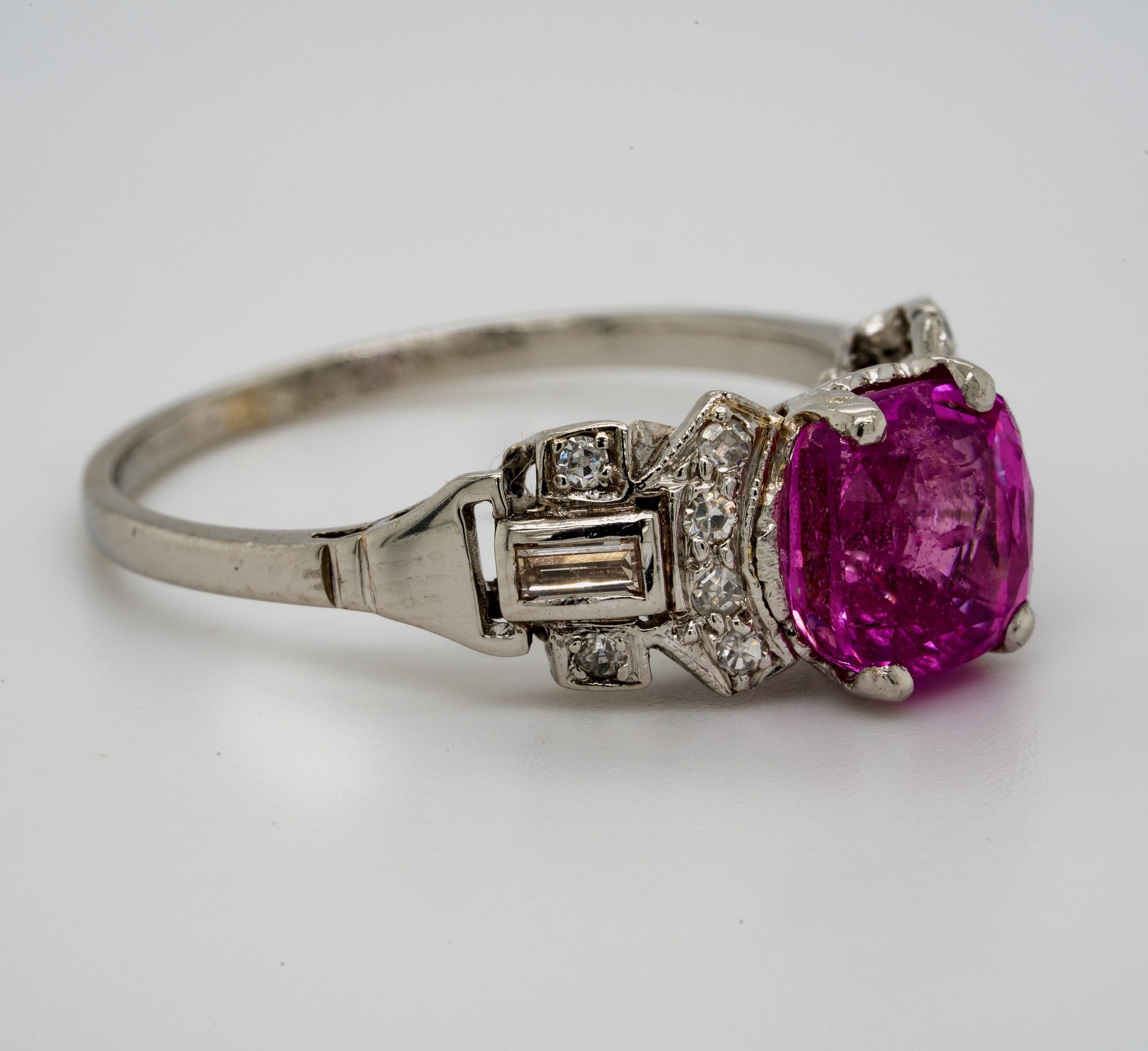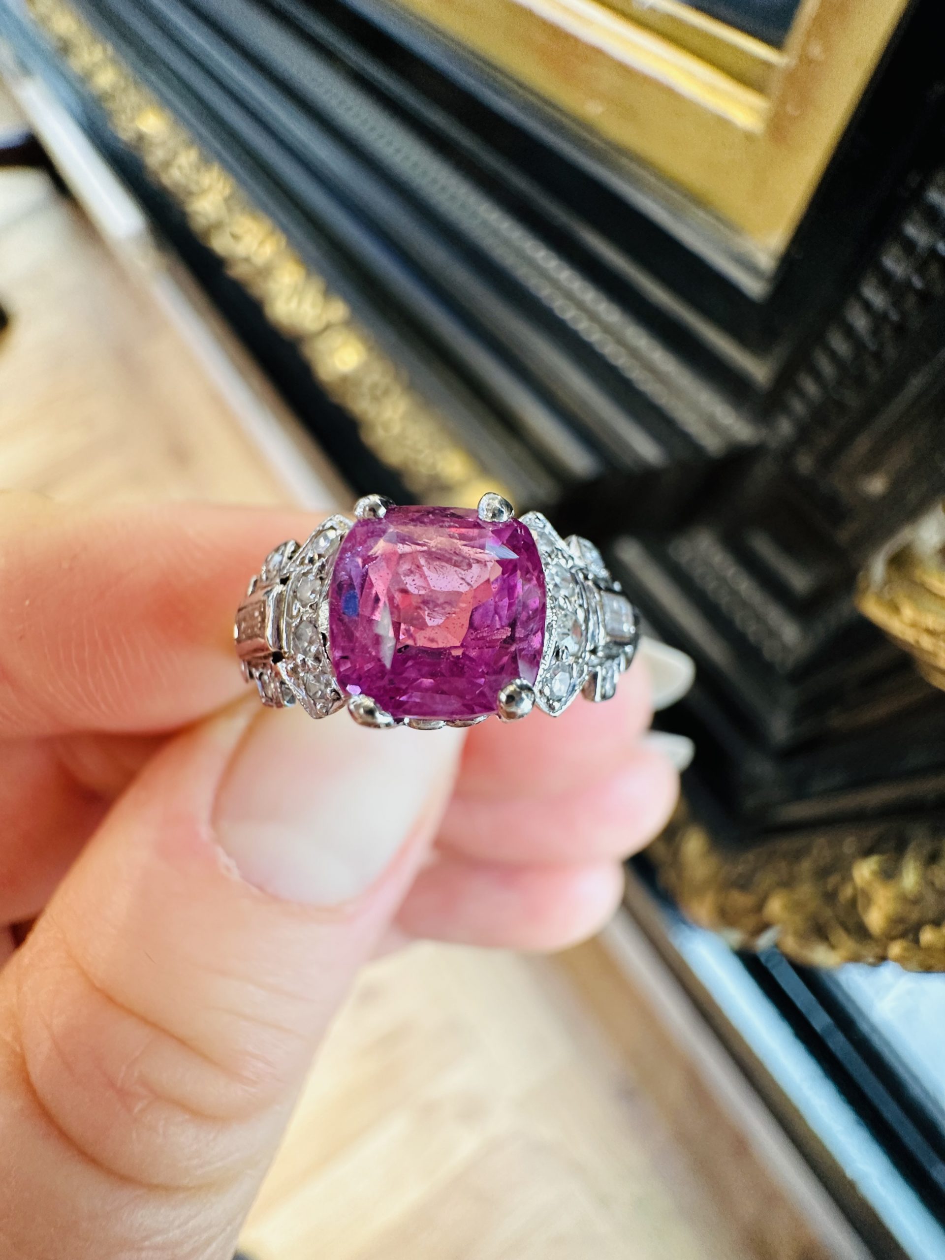 Vintage, Platinum 2.90ct Natural Pink Sapphire and 0.35ct Diamonds RingÂ